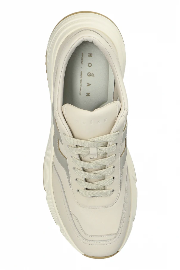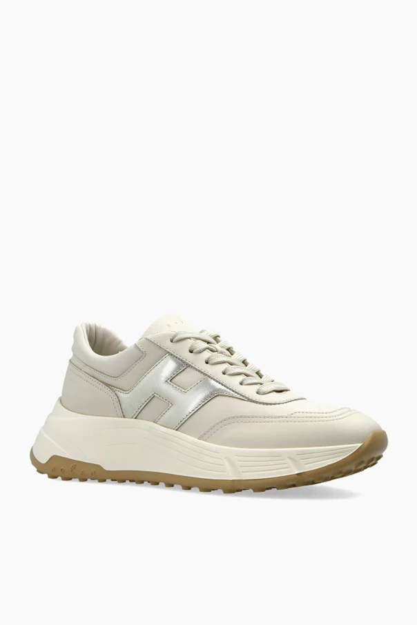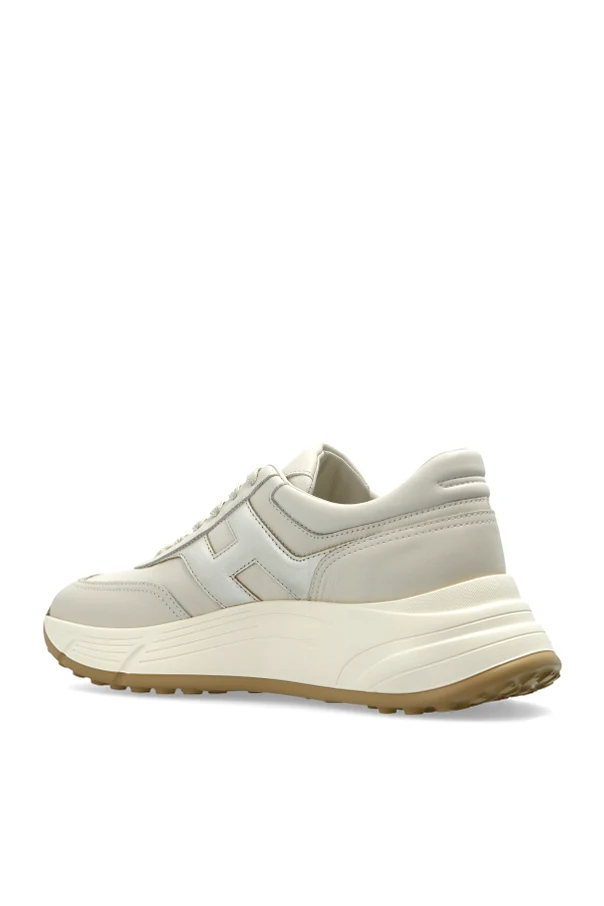 Cholewka została wykonana z wysokogatunkowej skóry licowej w urzekającym, kremowym kolorze. Subtelne, metaliczne akcenty wokół charakterystycznej litery „H” na panelach bocznych podkreślają indywidualny charakter projektu. Podeszwa z solidnej gumy utrzymana w kremowym tonie z jasnobrązowym wykończeniem zapewnia pewność kroku i komfort użytkowania.