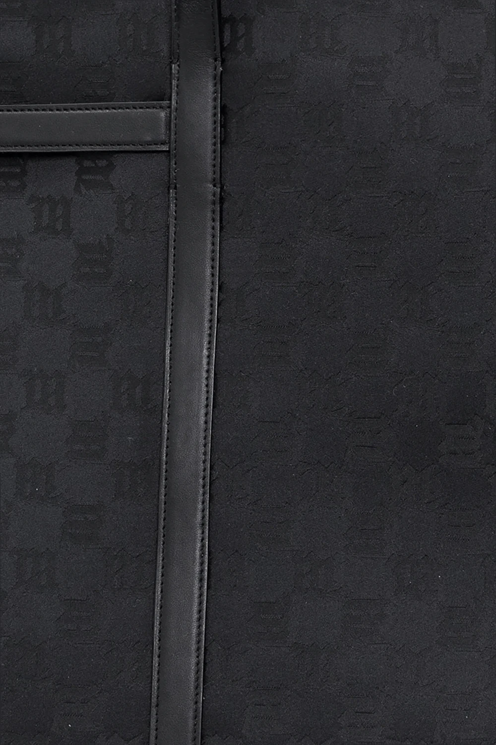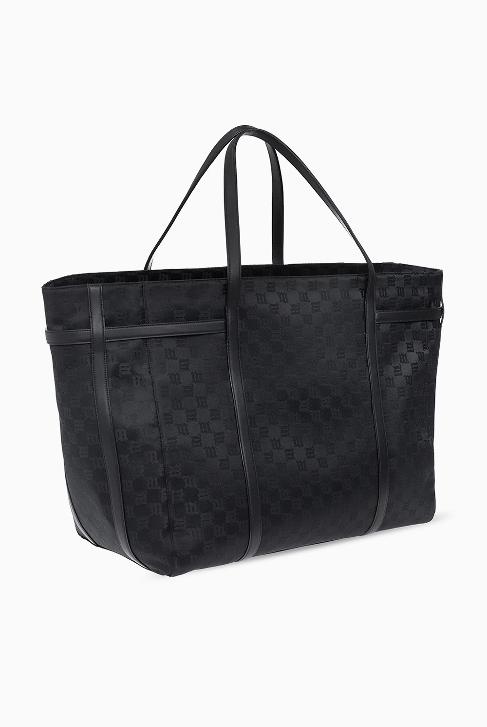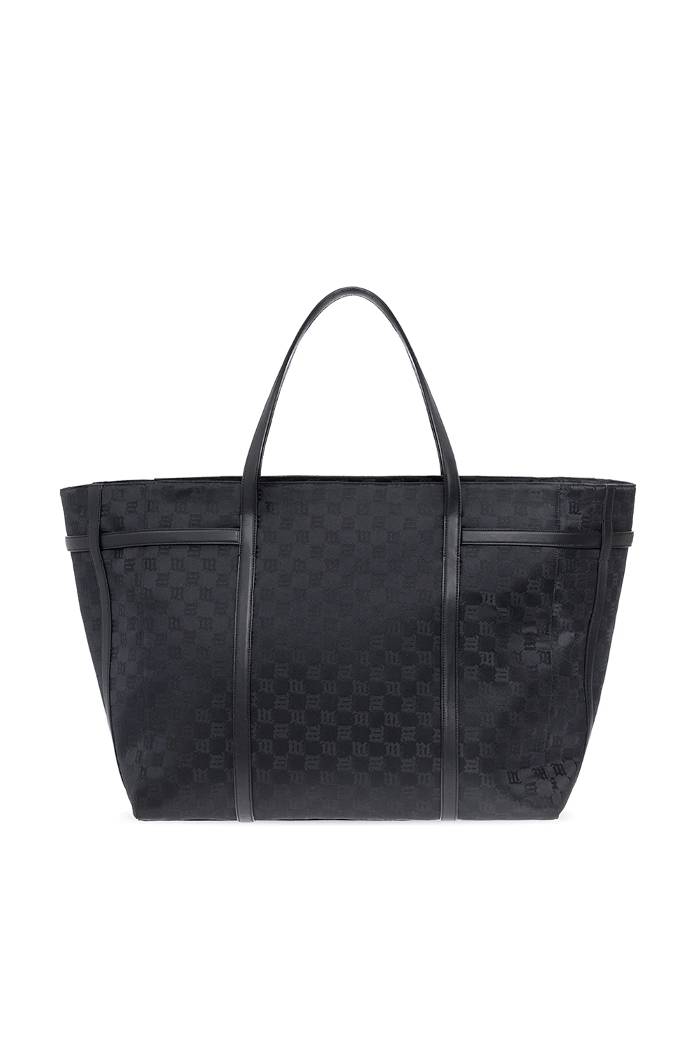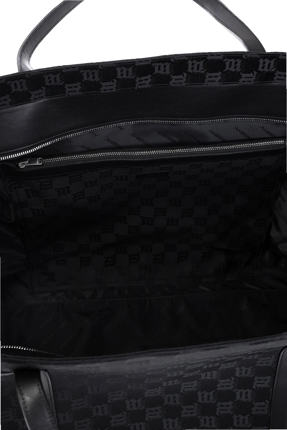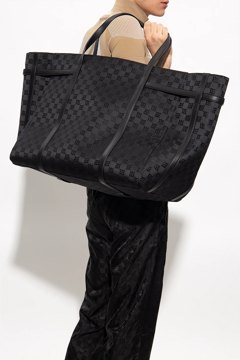 Czarna torba typu ‘shopper’ MISBHV. Zamykana na zamek. Ozdobiona wzorem z monogramem ‘M’. Dwie półokrągłe rączki. Wewnątrz komora oraz trzy kieszenie: dwie zamykane na zamek oraz wsuwana. Metalowe wykończenie w kolorze srebrnym.