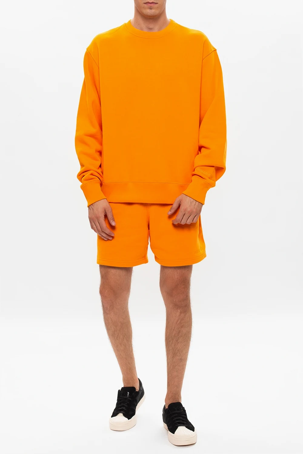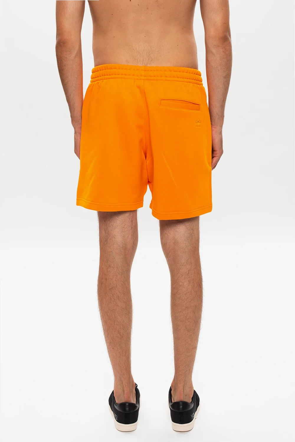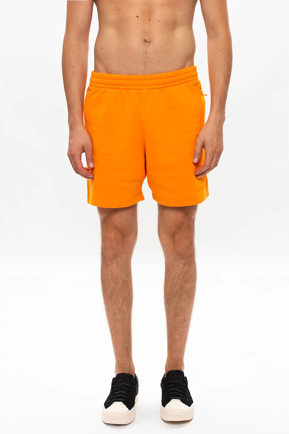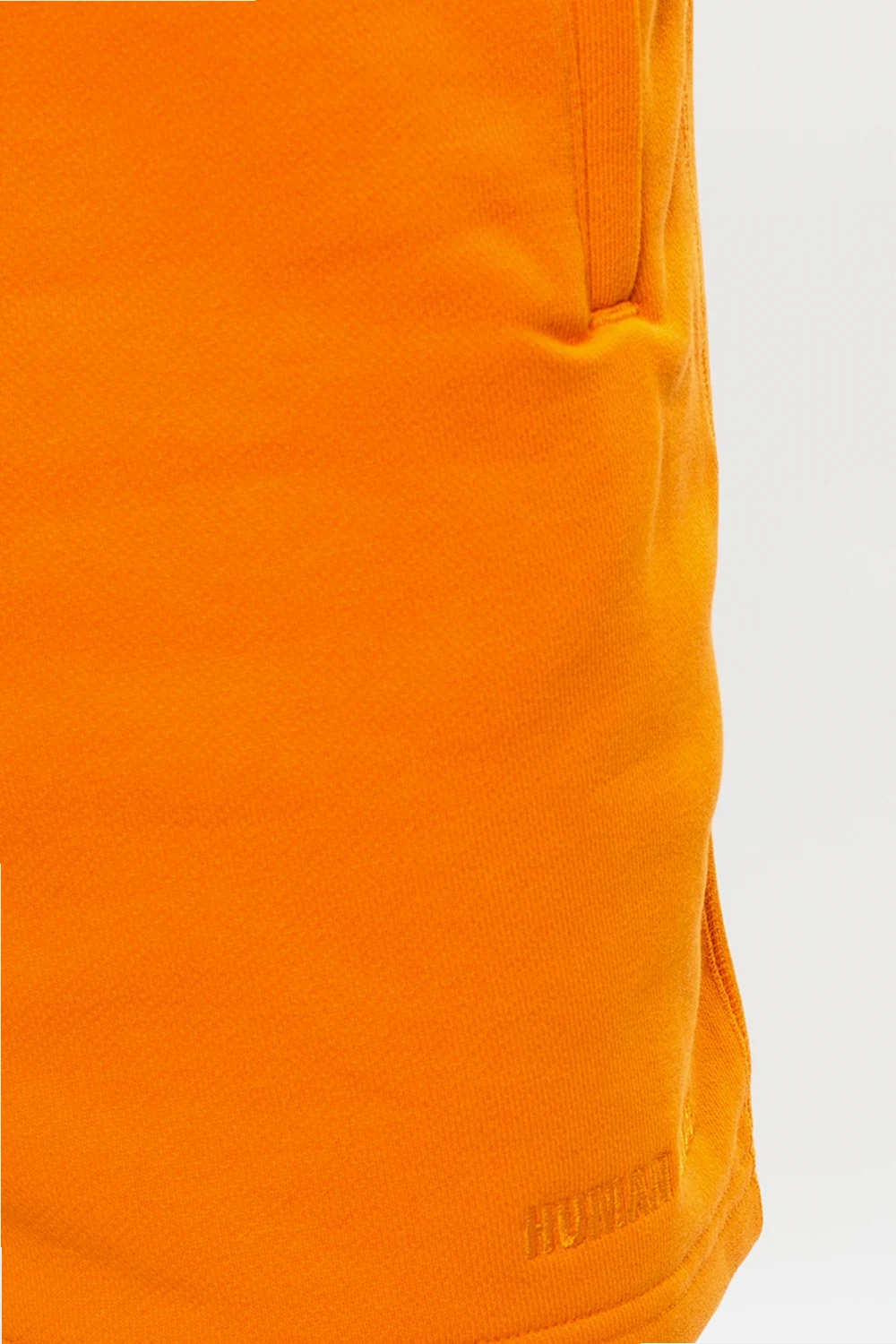 Pomarańczowe szorty Pharrell Williams x ADIDAS Originals. Wykonane z bawełny. W pasie ściągane trokami. Z tyłu wyszyte logo. Trzy kieszenie: dwie zapinane na zamek z przodu oraz wsuwana kieszeń z tyłu.