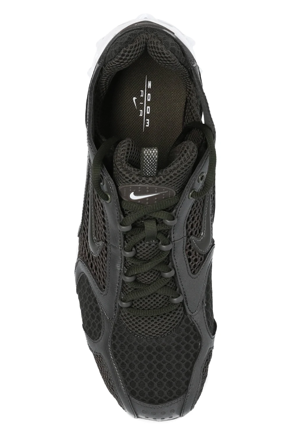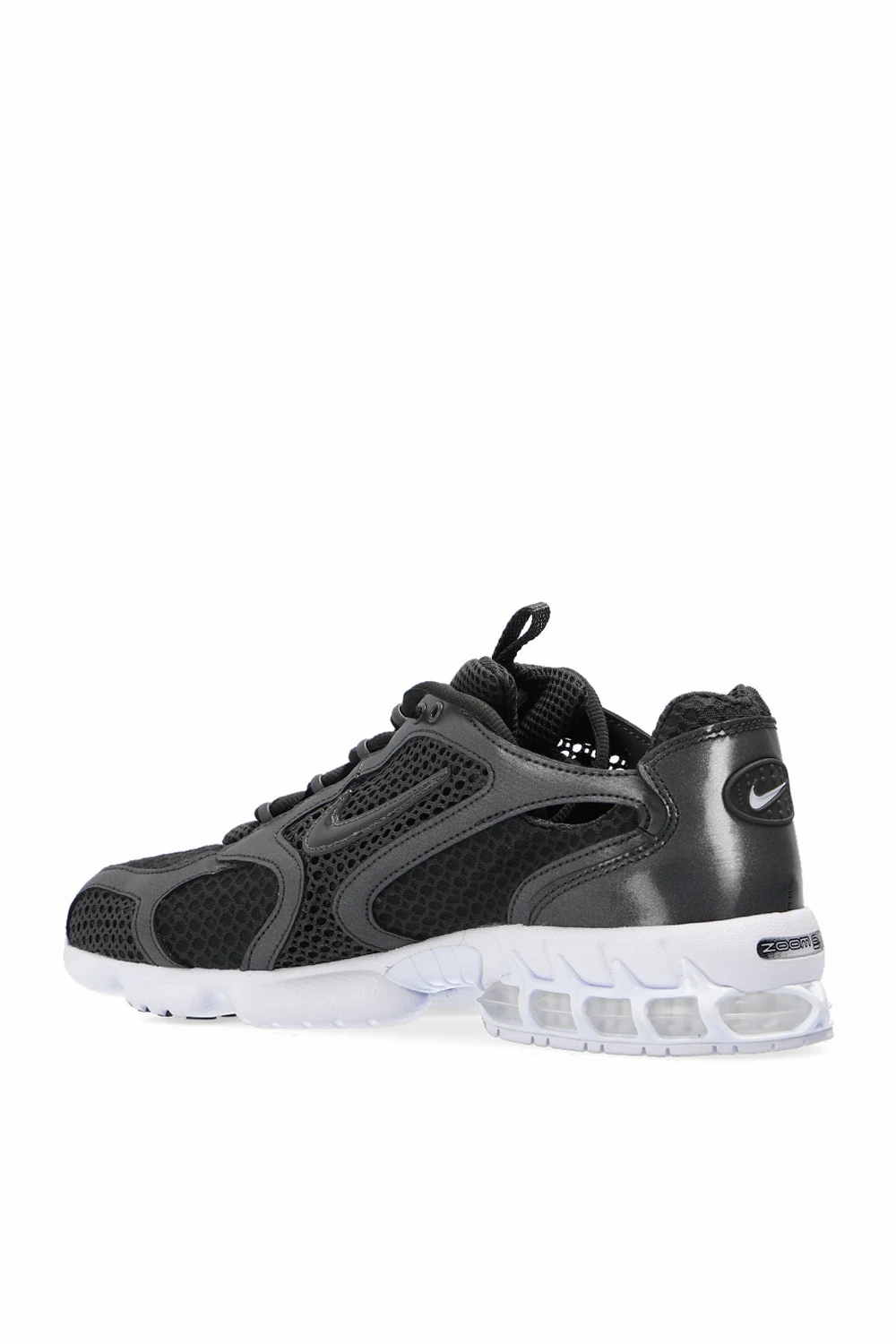 Ciemnoszare, sznurowane buty sportowe, model ‘Air Zoom Spiridon 2’ Nike. Wykonane z siatki. Aplikacja z logo. Biała, gumowa podeszwa z systemem amortyzującym Zoom Air.