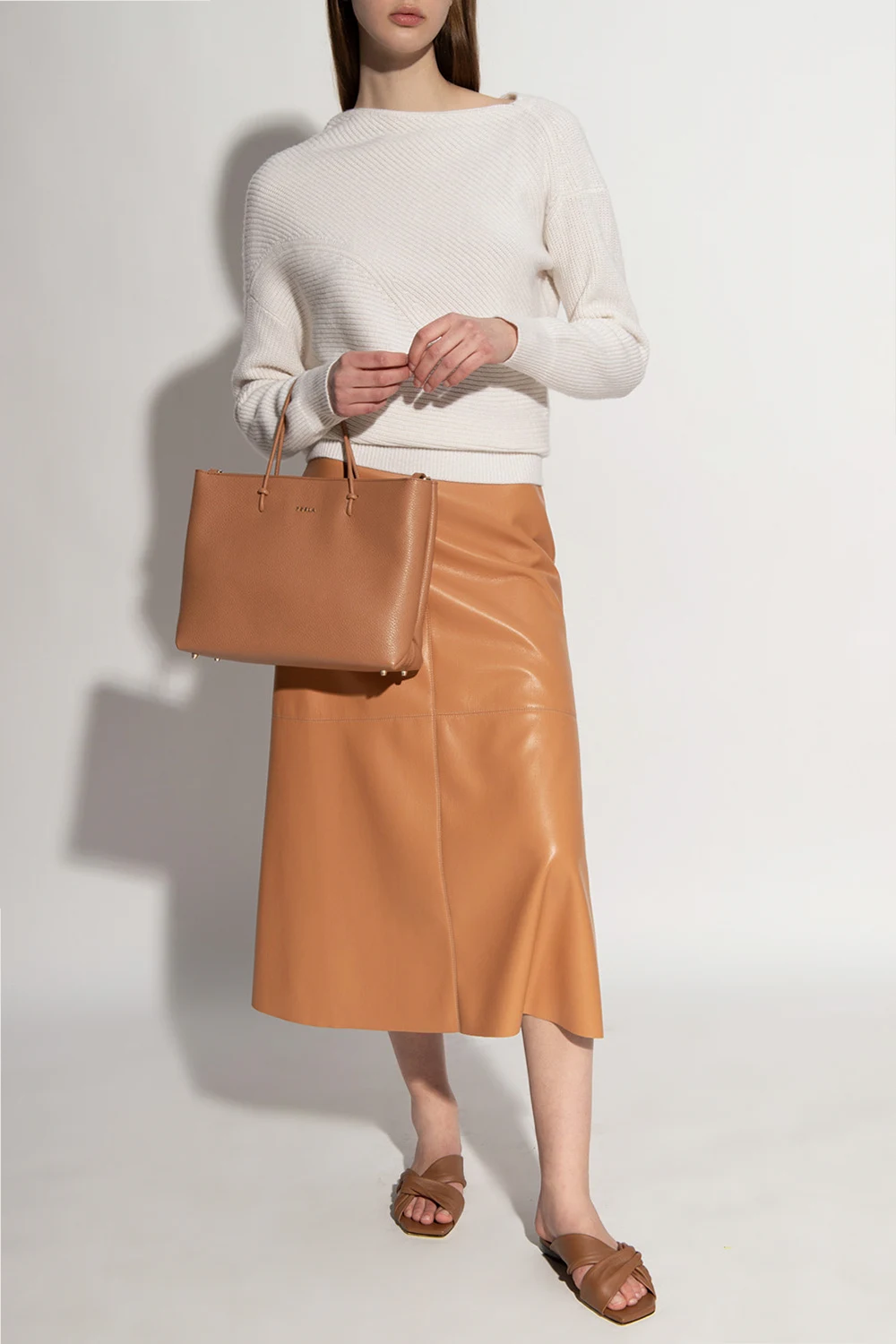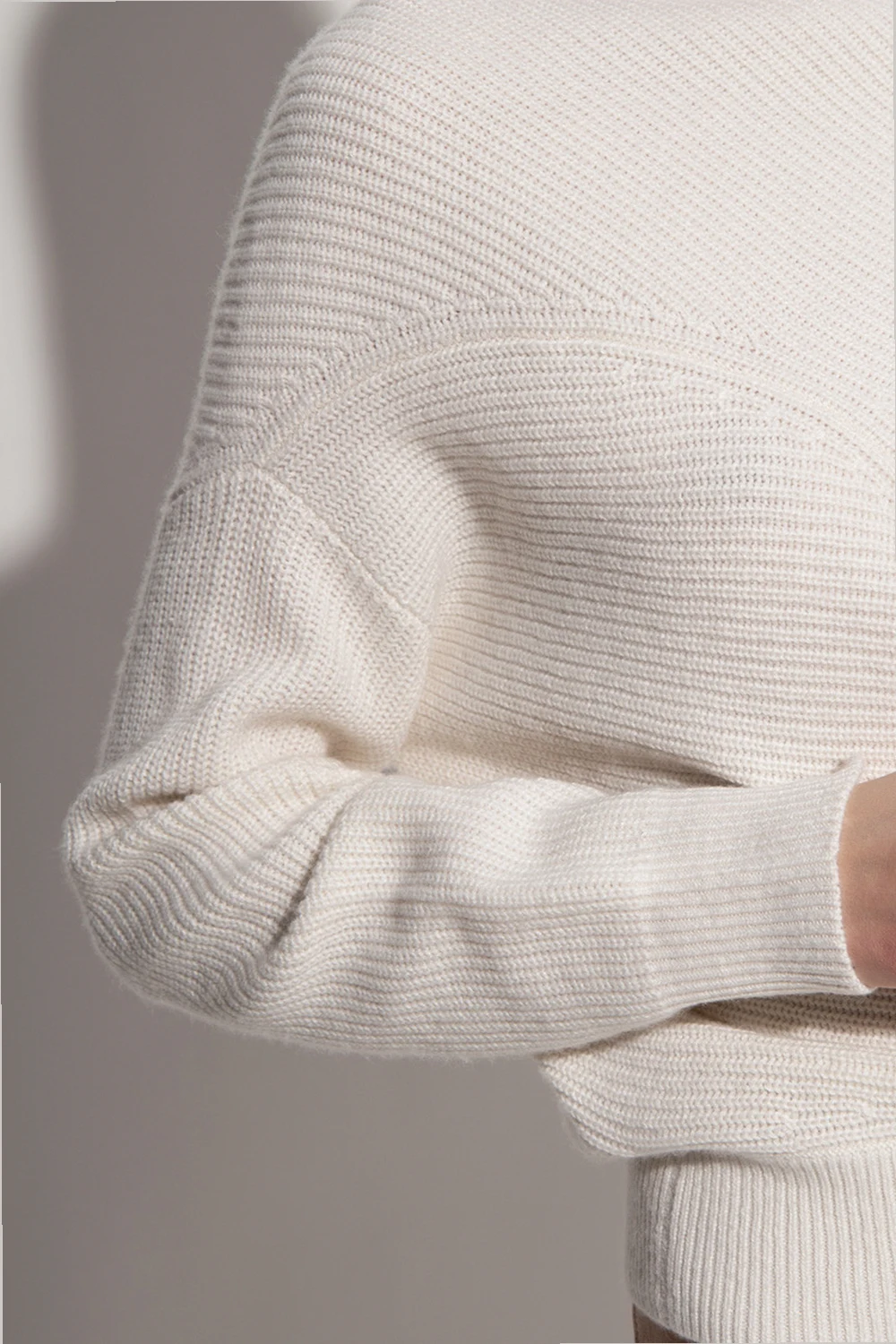 Kremowy, pleciony sweter Michael Kors. Wykonany z kaszmiru i jedwabiu. Dół i rękawy zakończone ściągaczami.