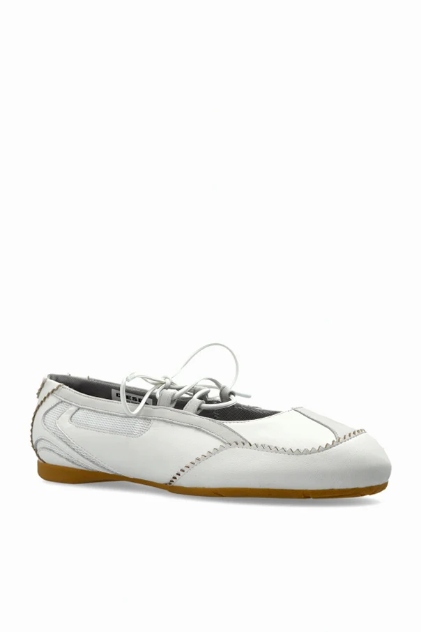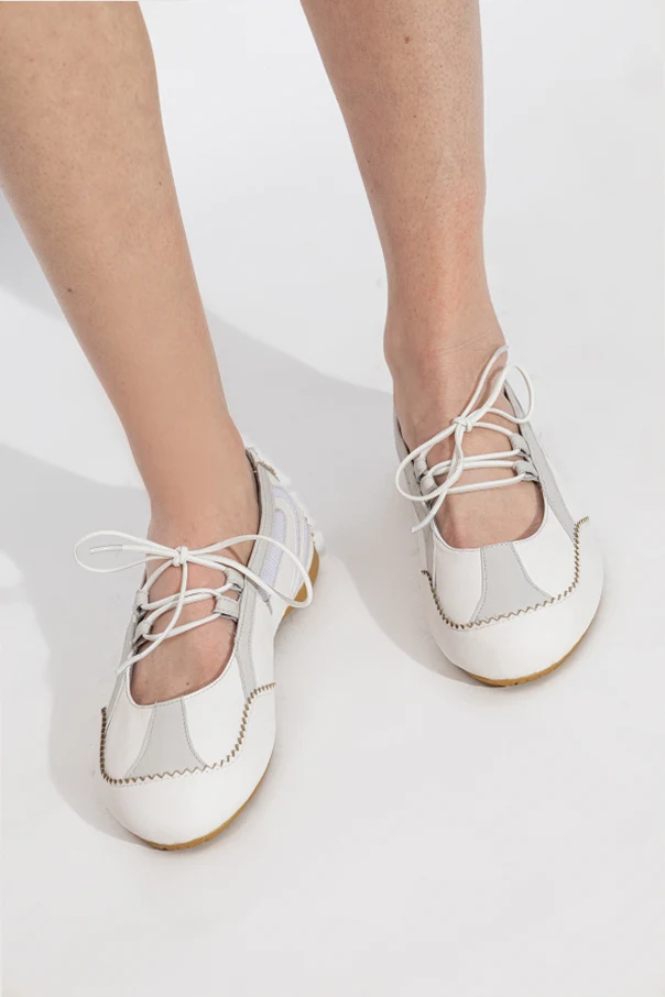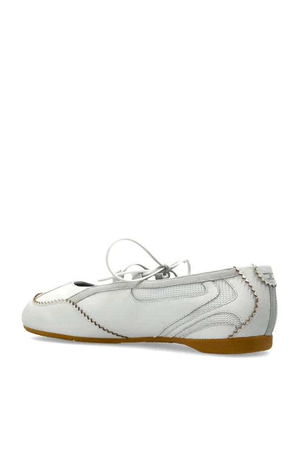 Baleriny ‘D-MILE’ to synonim wyrafinowanej prostoty i nowoczesnej elegancji. Model utrzymany w głębokim odcieniu bieli, zachwyca opływowym, sportowym kształtem z subtelnie zaokrąglonym noskiem. Dynamiczna linia cholewki oraz niezwykle płaska podeszwa tworzą rzadko spotykane połączenie klasyki z awangardowymi detalami.