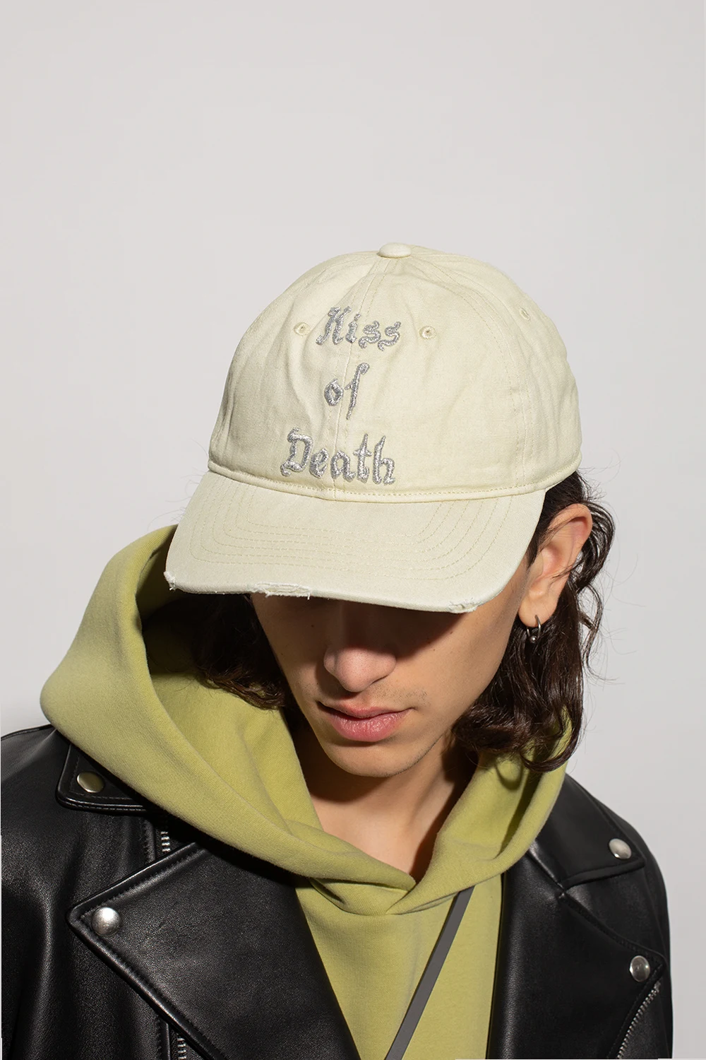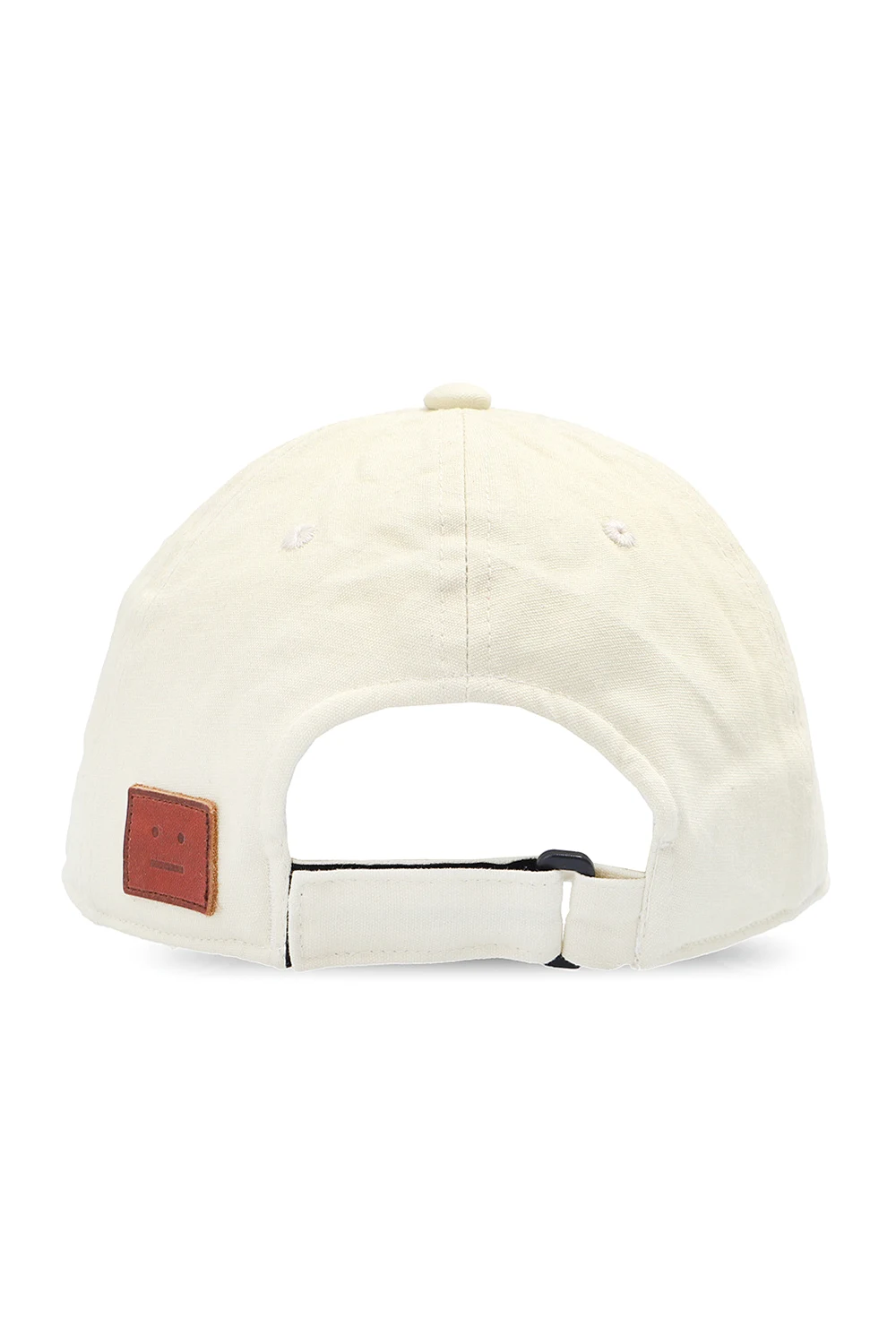 Jasnożółta czapka z daszkiem Acne Studios. Wykonana z bawełny. Ozdobiona przeszyciem w kolorze srebrnym. Z tyłu brązowa naszywka z logo. Zapięcie na rzep.