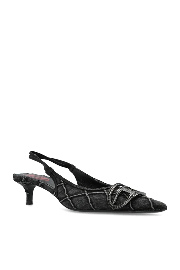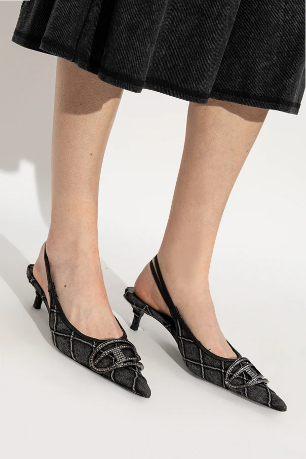 Odkryj prawdziwy wymiar luksusu, wybierając buty na obcasie ‘D-VENUS’ projektu Diesel. Ten unikatowy model w kolorze szarym wyróżnia się wyrafinowaną formą typu slingback z otwartą piętą oraz smukłym, niskim obcasem zapewniającym komfort i subtelny szyk. Aksamitna cholewka o lekkim połysku zdobiona jest misternymi przeszyciami, które tworzą intrygujący, romboidalny wzór siatkowy, podkreślając nowoczesny charakter obuwia.