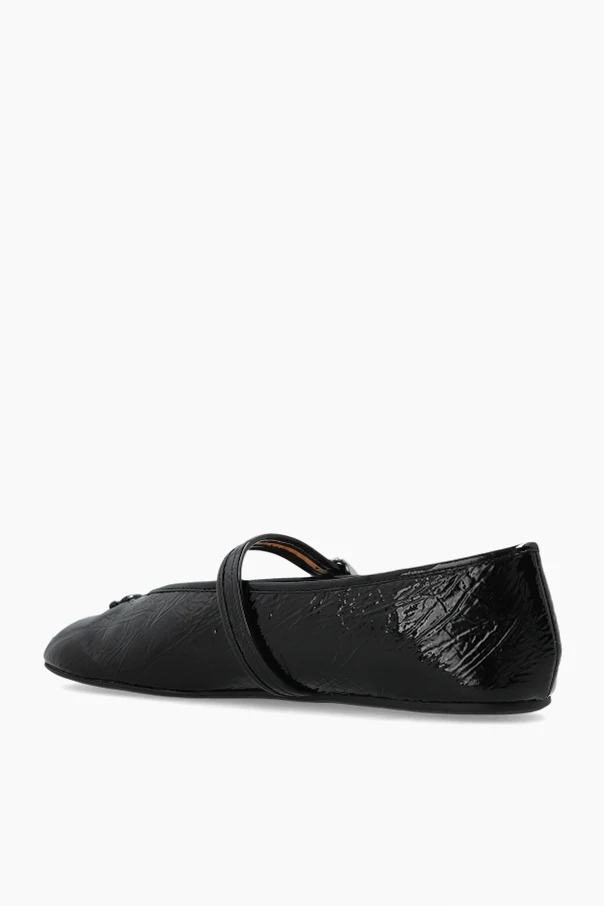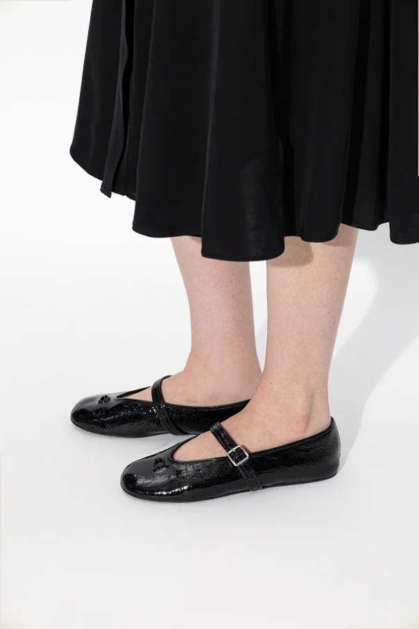 Ikoniczny pasek Mary Jane z elegancką srebrną klamrą.