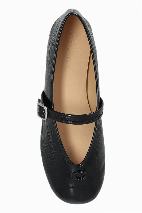 Baleriny SCULPTED CRINKLE to wykwintny przykład współczesnej elegancji inspirowanej rzemieślniczym dziedzictwem domu mody Coach. Utrzymane w głębokiej, jednolitej czerni , urzekają klasycznym, smukłym profilem i zaokrąglonym noskiem. Efektowna, marszczona faktura wykończenia, przypominająca błyszczącą i luksusową lakierowaną skórę, nadaje obuwiu intrygujący, nowoczesny wyraz.