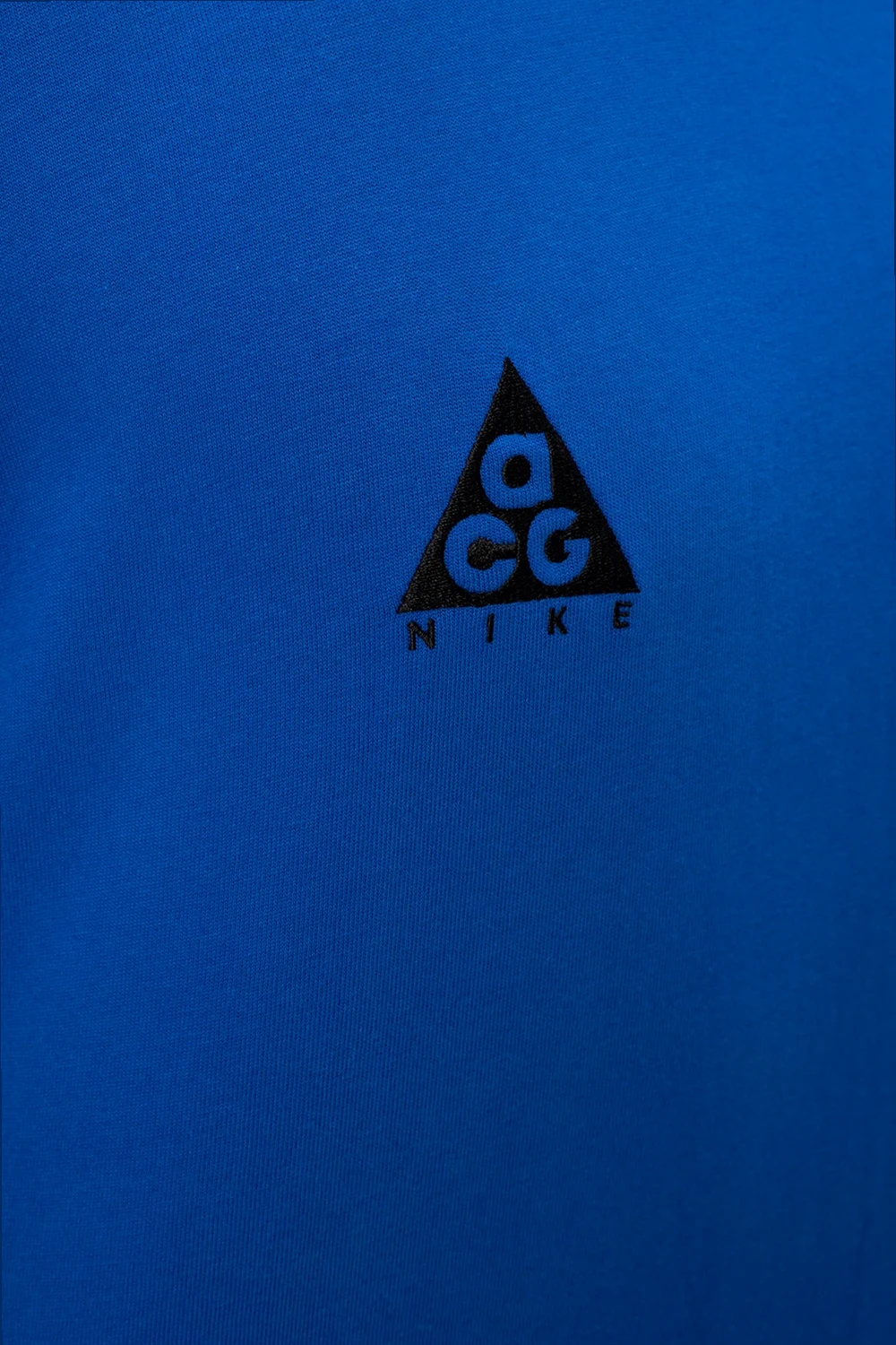 Niebieski t-shirt Nike, kolekcja ‘ACG’. Wykonany z bawełny. Wyszyte logo w kolorze czarnym. Okrągły dekolt. Produkt został zaprojektowany i przetestowany w stanie Oregon. Dzika przyroda i klimat tego stanu posłużyły za inspirację dla wyglądu i funkcjonalności produktu. Kolekcja ‘ACG’ czyli ‘All Conditions Gear’ została stworzona z innowacyjnych rozwiązań z myślą o odzieży sportowej, która sprawdzi się w każdych, nawet nadzwyczajnych warunkach.