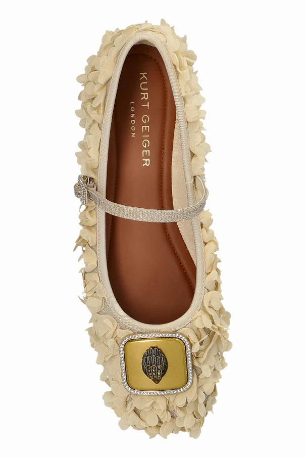 Baleriny Pimlico marki Kurt Geiger to szczyt kobiecej elegancji i kunsztu projektowego. Te klasyczne buty typu Mary Jane urzekają delikatnie zaokrągloną linią oraz kremową cholewką, ozdobioną trójwymiarowymi aplikacjami o fakturze płatków, dodającymi im niepowtarzalnej subtelności.