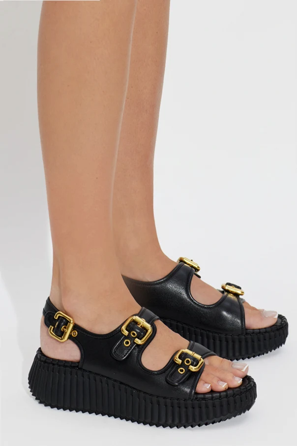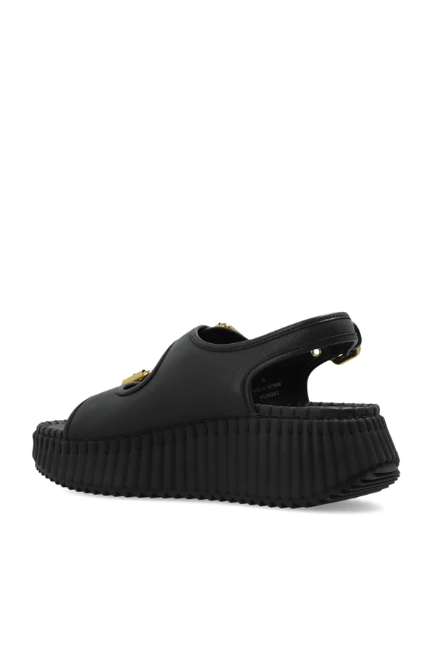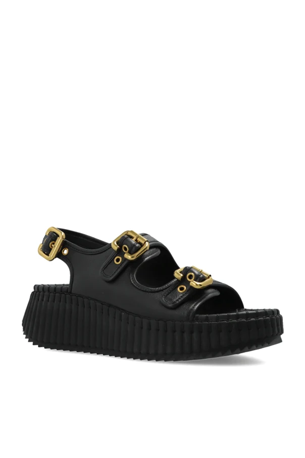 Sandały na platformie ‘Nama’ od Chloé to esencja nowoczesnej elegancji, wyrażona poprzez wyrazisty, współczesny kształt i wyrafinowany minimalizm. Całość wykonana z wysokogatunkowej skóry licowej o gładkim, matowym wykończeniu, zachwyca perfekcją detali oraz jakością zastosowanych materiałów.