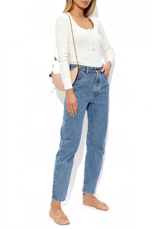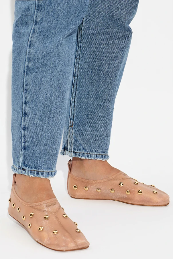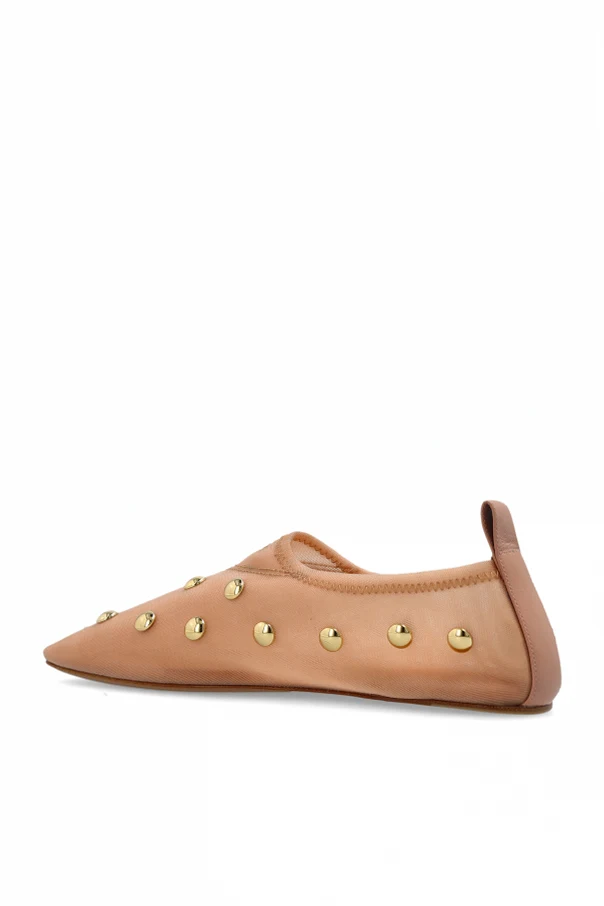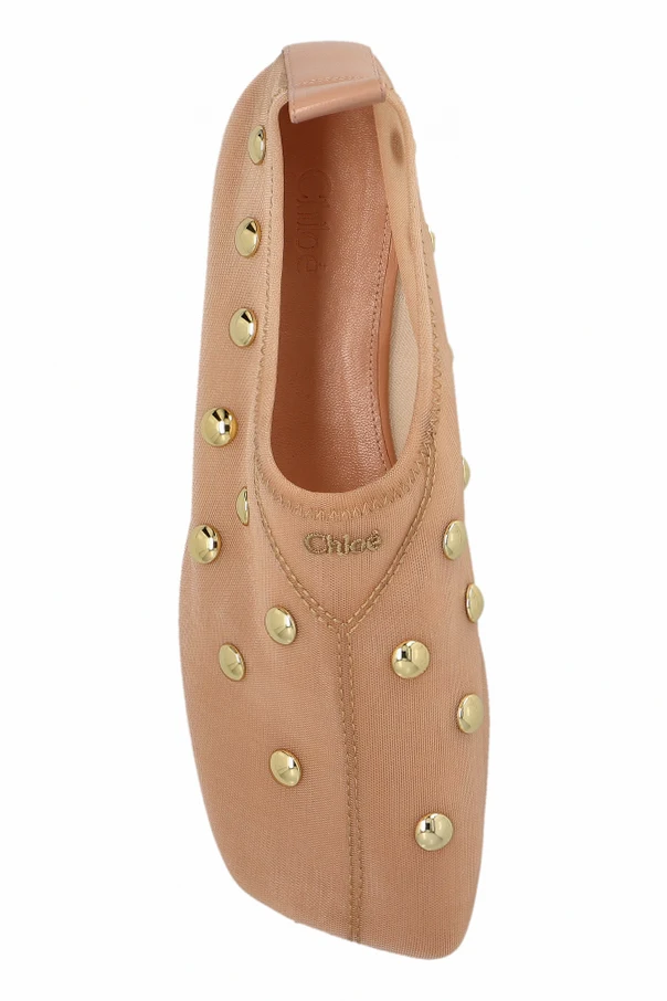 Buty ‘Rita’ marki Chloé to esencja wyrafinowanej elegancji, zamknięta w minimalistycznej formie klasycznej baleriny. Model ten wyróżnia się opływowym kształtem z lekko spiczastym noskiem i niską cholewką, podkreślającym subtelność kobiecej sylwetki. Gładka, różowa skóra najwyższej jakości emanuje delikatnym połyskiem, zaś regularnie rozmieszczone złote, kuliste ćwieki stanowią wyrafinowany, ozdobny akcent na bocznej części cholewki.