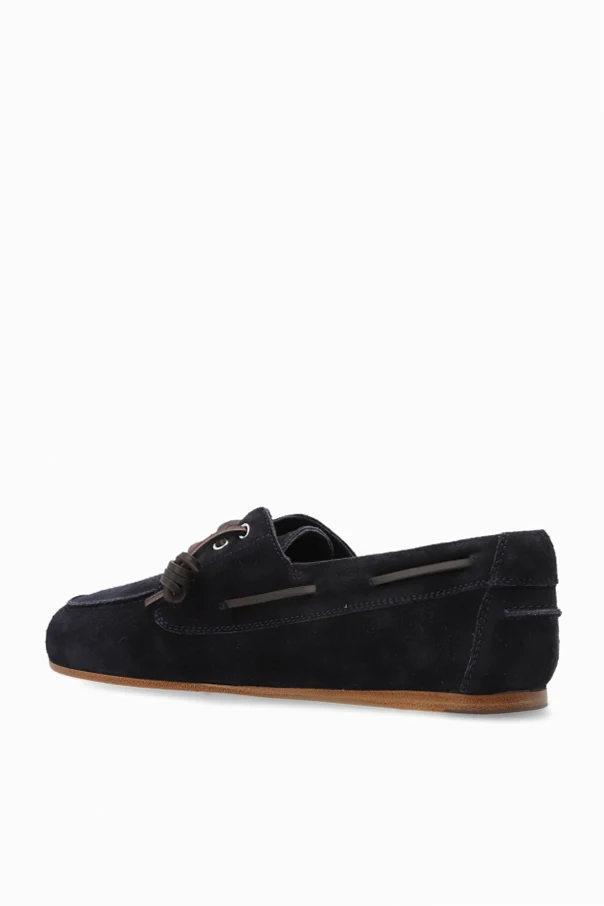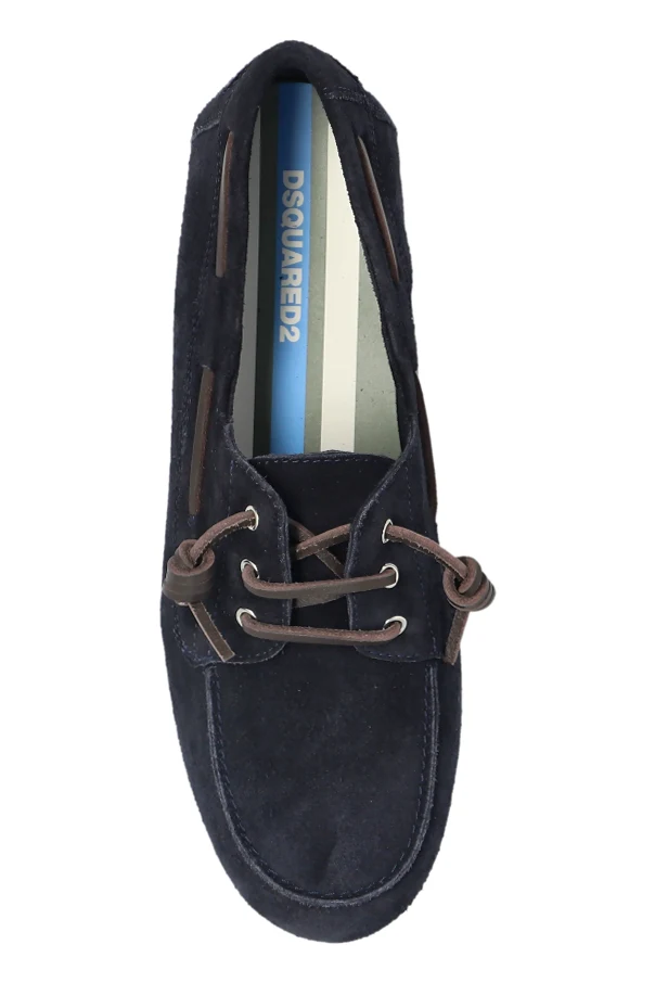 Konstrukcję wyróżniają skórzane sznurowadła przewleczone przez metalowe oczka , finezyjnie okalające górną krawędź buta. Minimalistyczna stylistyka bez dodatkowych zdobień pozwala w pełni docenić jakość materiałów i kunszt projektu sygnowanego przez Dsquared2 .