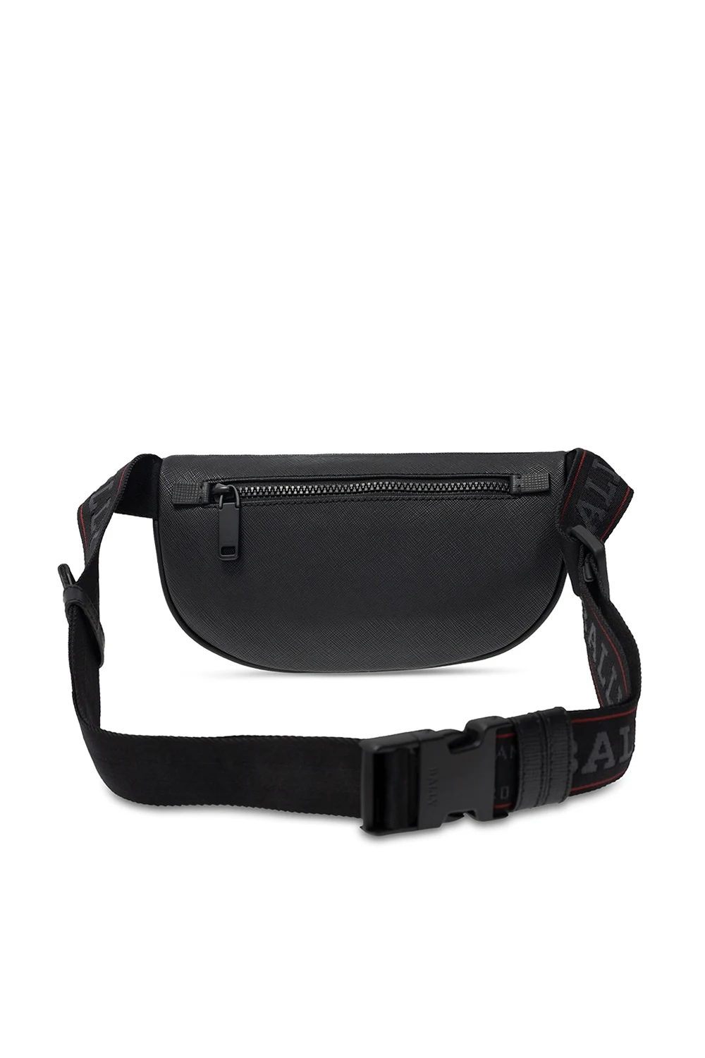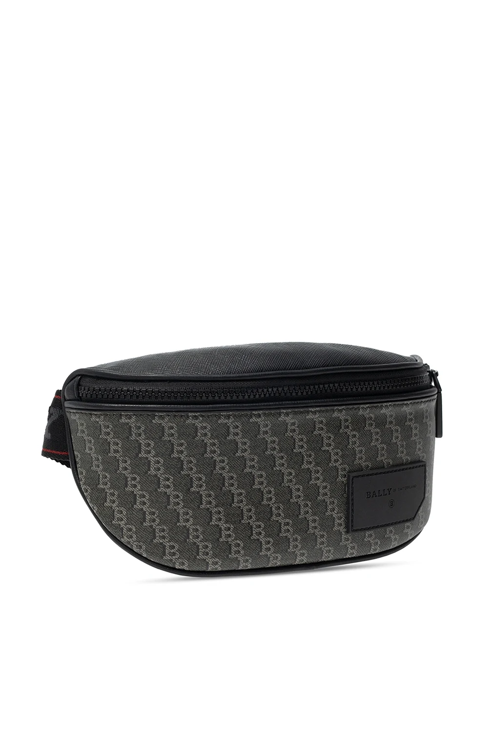 Czarno-zielona torba na pas, model ‘Sonni’ Bally. Zamykana na dwubiegunowy zamek. Ozdobiona nadrukowanym logo oraz naszywką z logo. Z tyłu kieszeń zamykana na zamek. Regulowany pas. Wewnątrz komora.