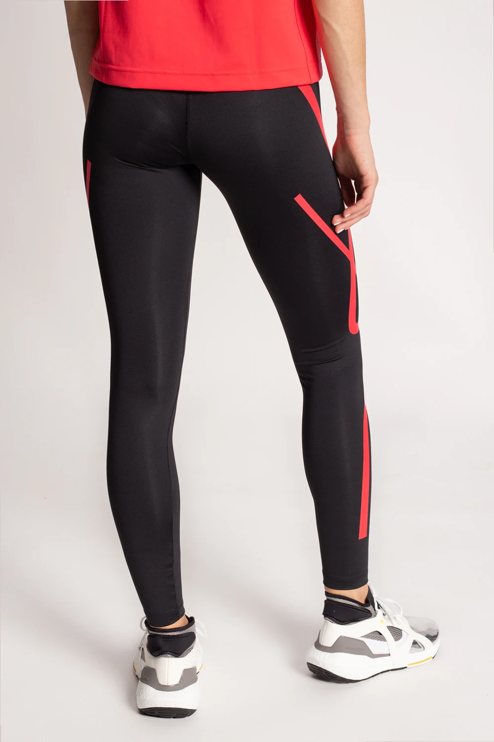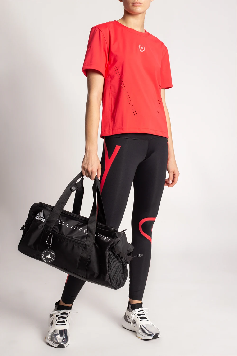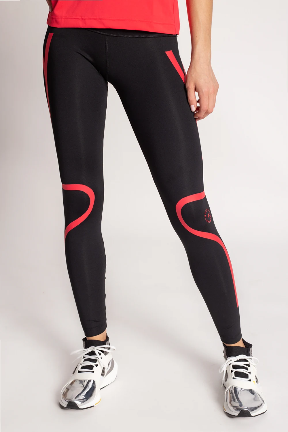 Czarne legginsy ADIDAS by Stella McCartney, linia ‘Primeblue’. Wykonana z materiału pochłaniającego wilgoć AEROREADY. W pasie ściągane trokami. Nadrukowany wzór z logo w kolorze czerwonym. U góry odblaskowy pasek w kolorze srebrnym. Z tyłu kieszeń zapinana na zamek. Primeblue to wykorzystany przy produkcji wysokiej jakości materiał pochodzący z recyklingu, powstały częściowo z Parley Ocean Plastic, tworzywa z plastikowych odpadów zebranych z odległych wysp, plaż, przybrzeżnych miejscowości i linii brzegowych, aby zapobiegać zanieczyszczeniu oceanów. Produkty wykonane z Primeblue zawierają minimum 40% materiałów pochodzących z recyklingu.