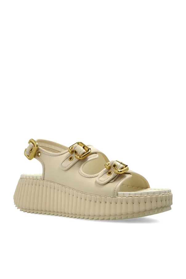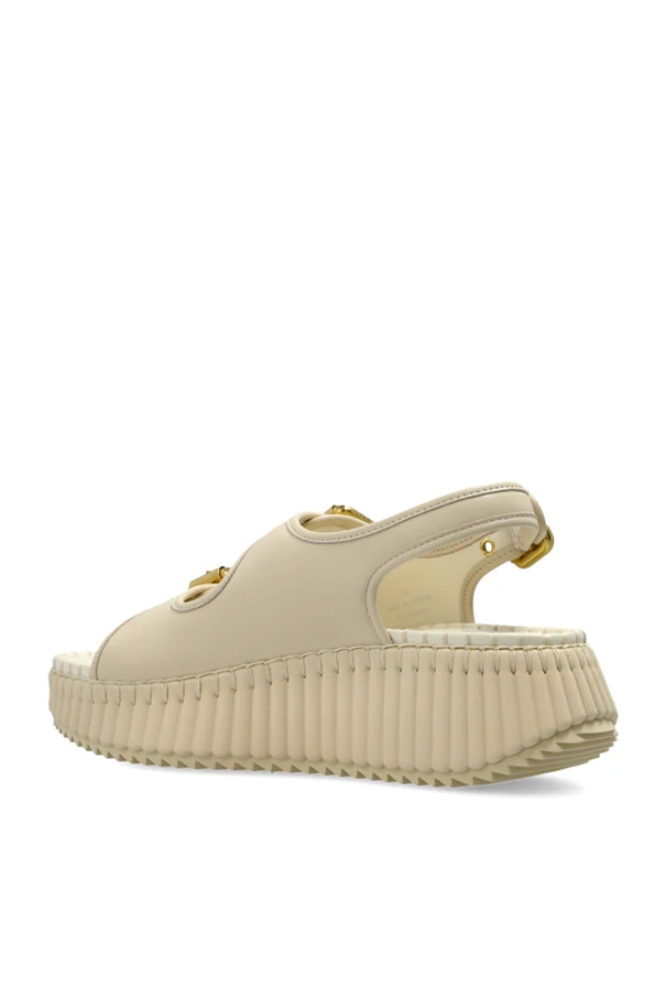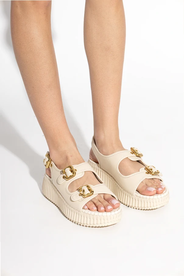 Skórzane sandały ‘Nama’ to wykwintna propozycja dla koneserek wyszukanego stylu, stworzona przez mistrzynię rzemiosła – Chloé. Model wyróżnia minimalistyczna estetyka – jednolity, kremowy kolor harmonizuje z wyważoną linią sandała i nadaje mu wytwornego sznytu.