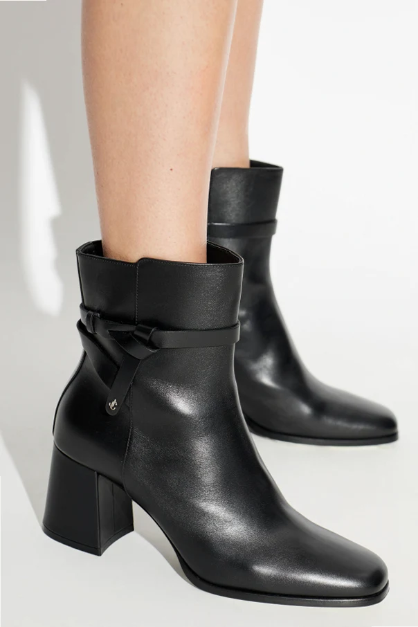 Botki na obcasie Lawton od Jimmy Choo to kwintesencja ponadczasowej elegancji i wyrafinowanego stylu. Wykonane z najwyższej jakości gładkiej czarnej skóry licowej , urzekają matowym wykończeniem z delikatnym połyskiem, podkreślającym luksusowy charakter produktu.