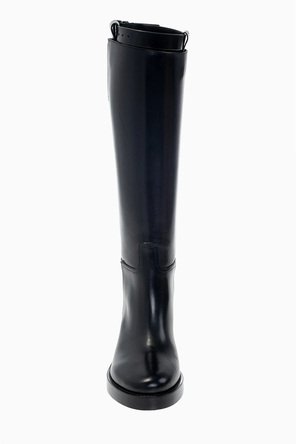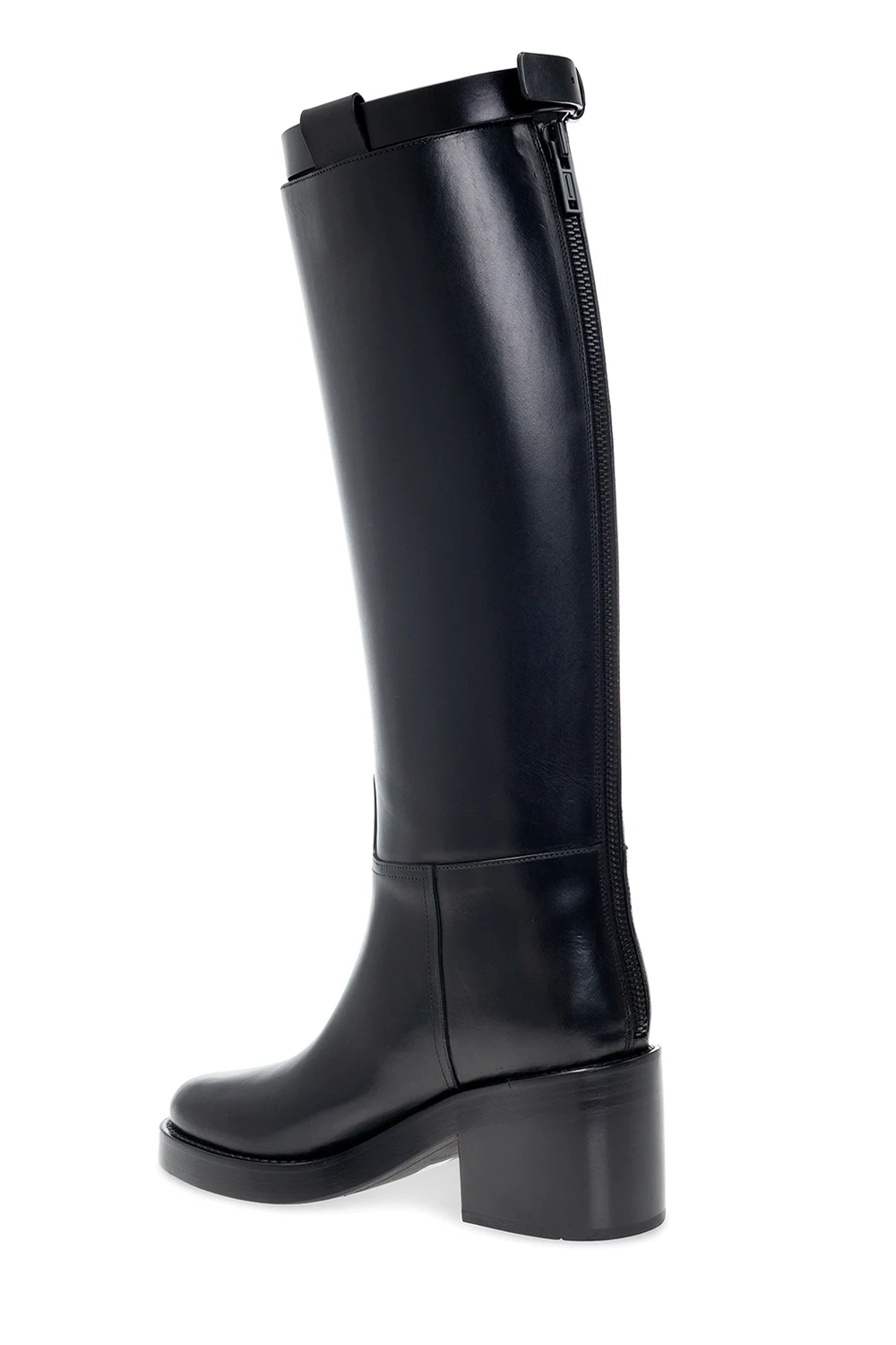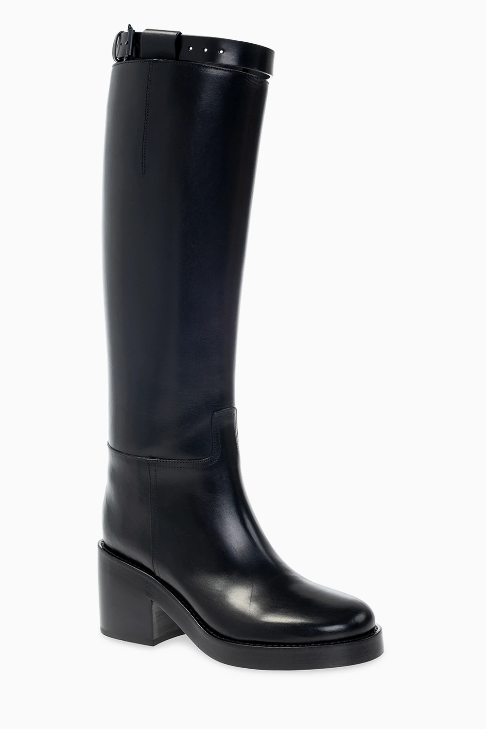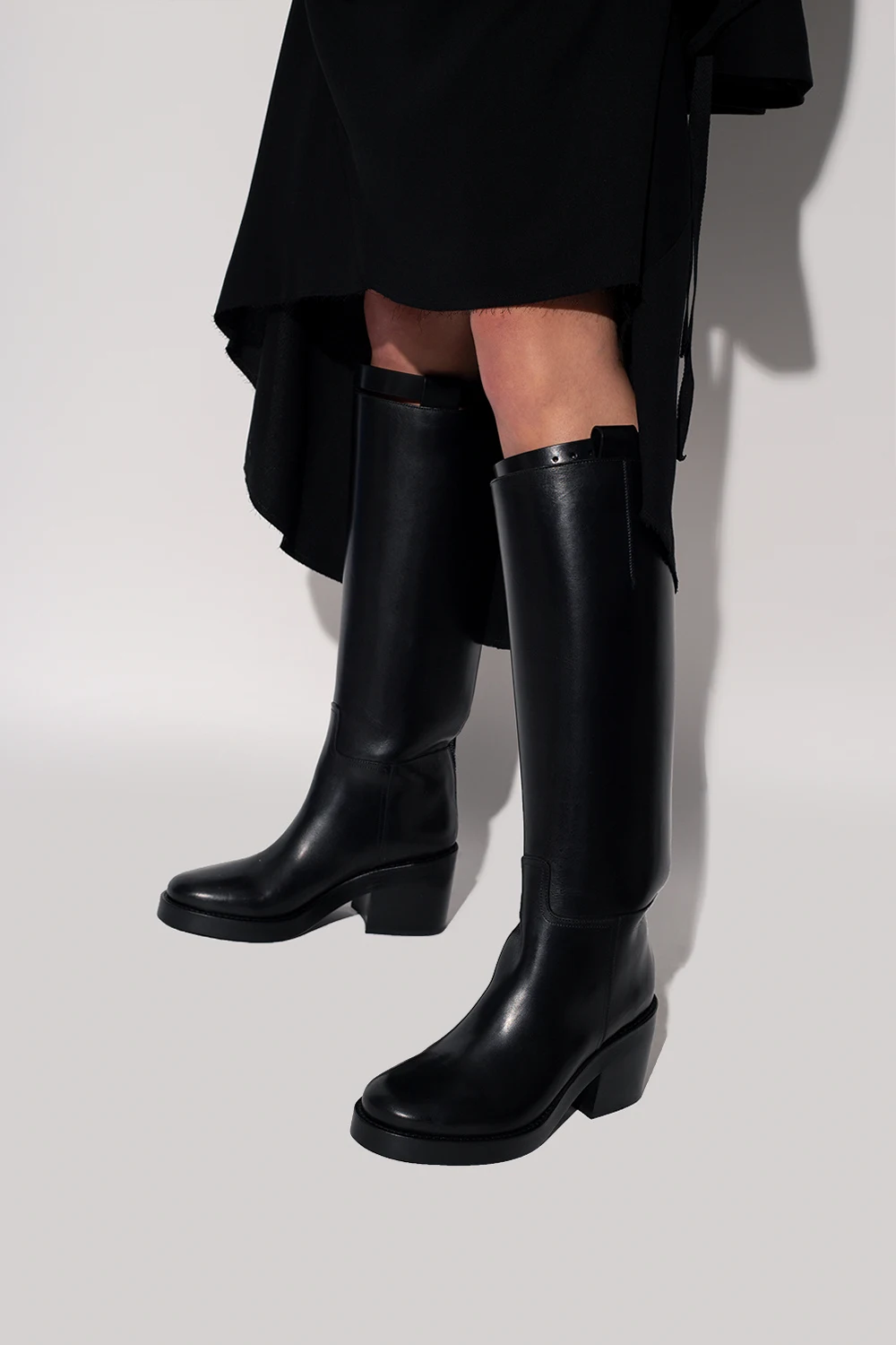 Czarne kozaki na obcasie, model ‘Stan’ Ann Demeulemeester. Wykonane ze skóry. Zapinane na pasek z klamrą z tyłu. Czarna, skórzana podeszwa.