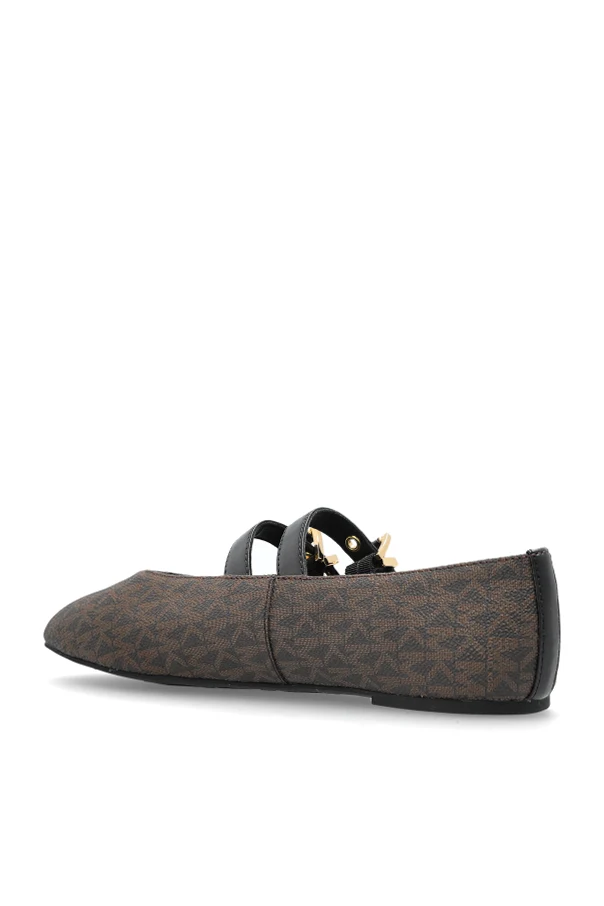 Baleriny Rowen marki Michael Michael Kors to wyjątkowy przykład subtelnej elegancji w nowoczesnym wydaniu. Klasyczny fason flat shoes, z wyraźnie zaokrąglonym przodem i delikatnie podwyższoną piętą, zyskuje wyrazistość dzięki geometrycznemu, brązowemu printowi z motywem liter – sygnałem rozpoznawczym tej prestiżowej marki.