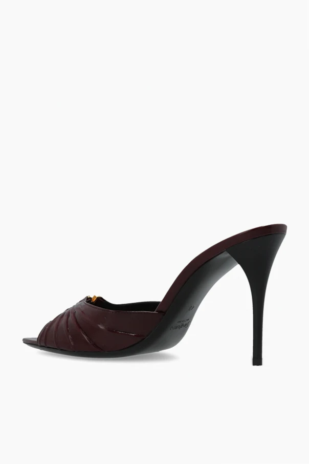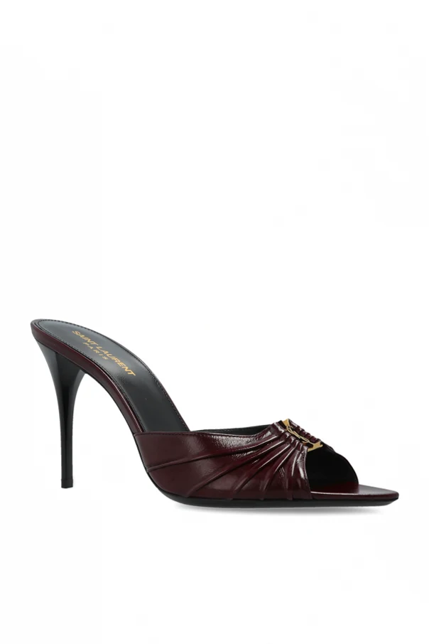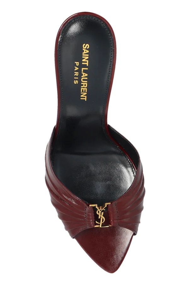 Klapki na obcasie Babylone marki Saint Laurent to kwintesencja paryskiej elegancji i nowoczesnej kobiecości. Wyróżniają się subtelnie spiczastą linią noska oraz otwartą, wysublimowaną konstrukcją typu mule, osadzoną na smukłym obcasie-szpilce. Model wykonano z najwyższej klasy skóry cielęcej o wyrazistym połysku w głębokim odcieniu bordo , natomiast delikatne wnętrze stanowi miękka skóra jagnięca . Urok całości dopełniają marszczenia na przodzie oraz złote, centralnie umieszczone logo YSL , które świadczy o niepowtarzalnej klasie produktu. To propozycja dla kobiet ceniących doskonałe wykonanie oraz ponadczasowy luksus.