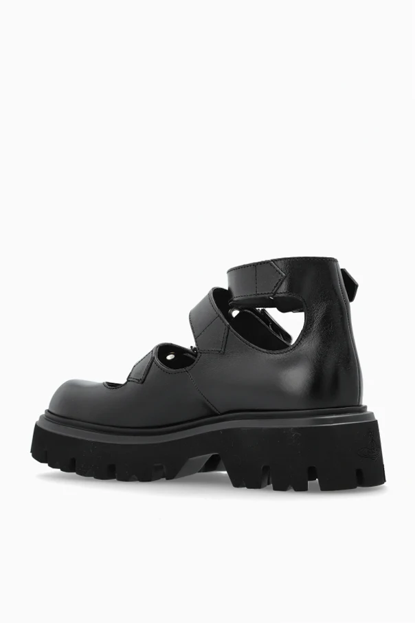 Skórzane buty marki Vivienne Westwood emanują niepowtarzalnym, nieco buntowniczym charakterem, będąc hołdem dla ponadczasowej awangardy. Masywna sylwetka typu loafers występuje tu w odważnej, mocno zabudowanej formie ze zdecydowaną, żłobioną podeszwą typu traktor, która dodaje całości wyrazistości i nowoczesności.