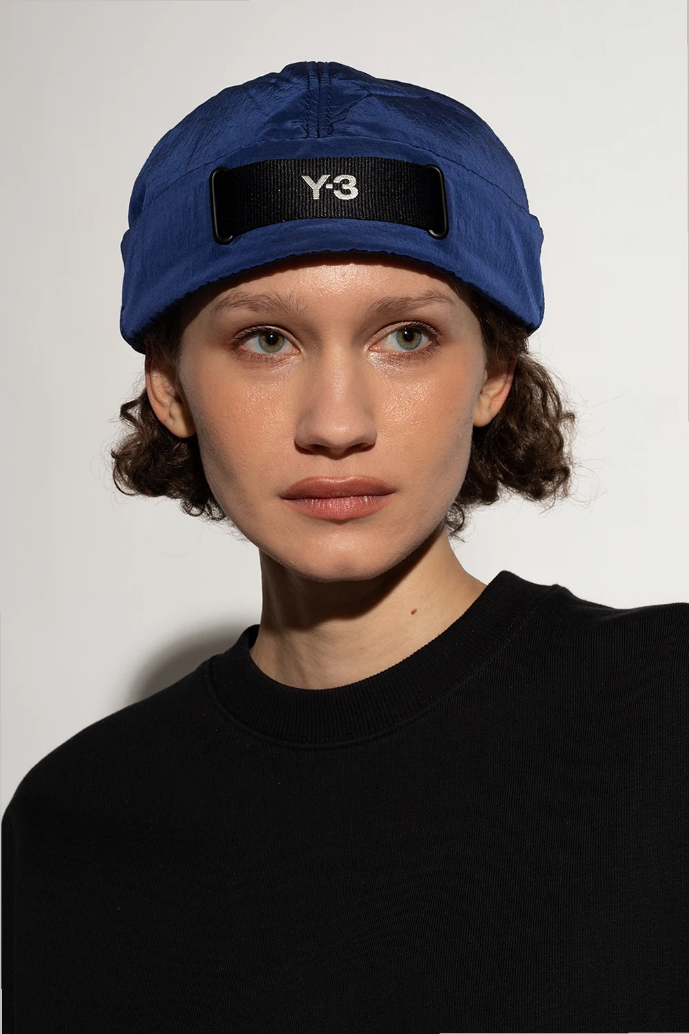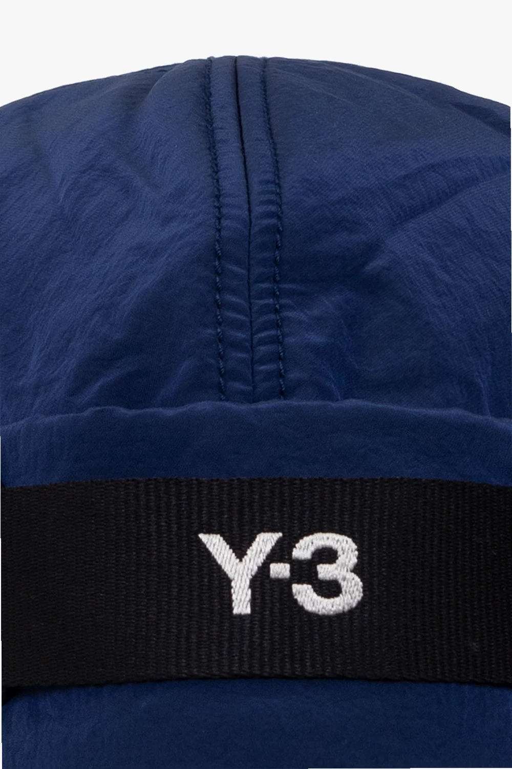 Granatowa czapka Y-3 Yohji Yamamoto. Wykonana z materiału z recyklingu. Z przodu rypsowy pasek z białym, wyszytym logo.