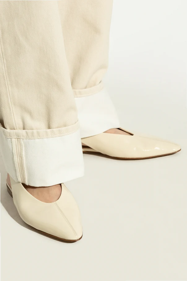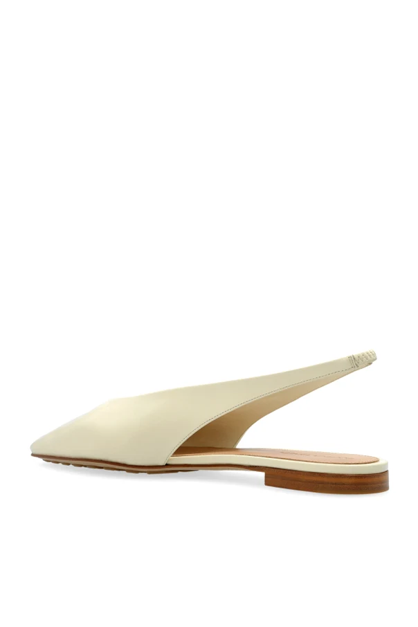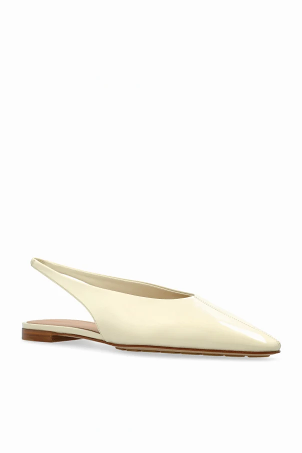 Przedstawiamy buty "Sofia" z odkrytą piętą, znakomite dzieło Bottega Veneta . Te wyrafinowane baleriny zachwycają elegancją i nowoczesnym charakterem dzięki szpiczastemu przodowi. Wykonane z gładkiej, połyskującej skóry, emanują luksusem i najwyższą jakością.