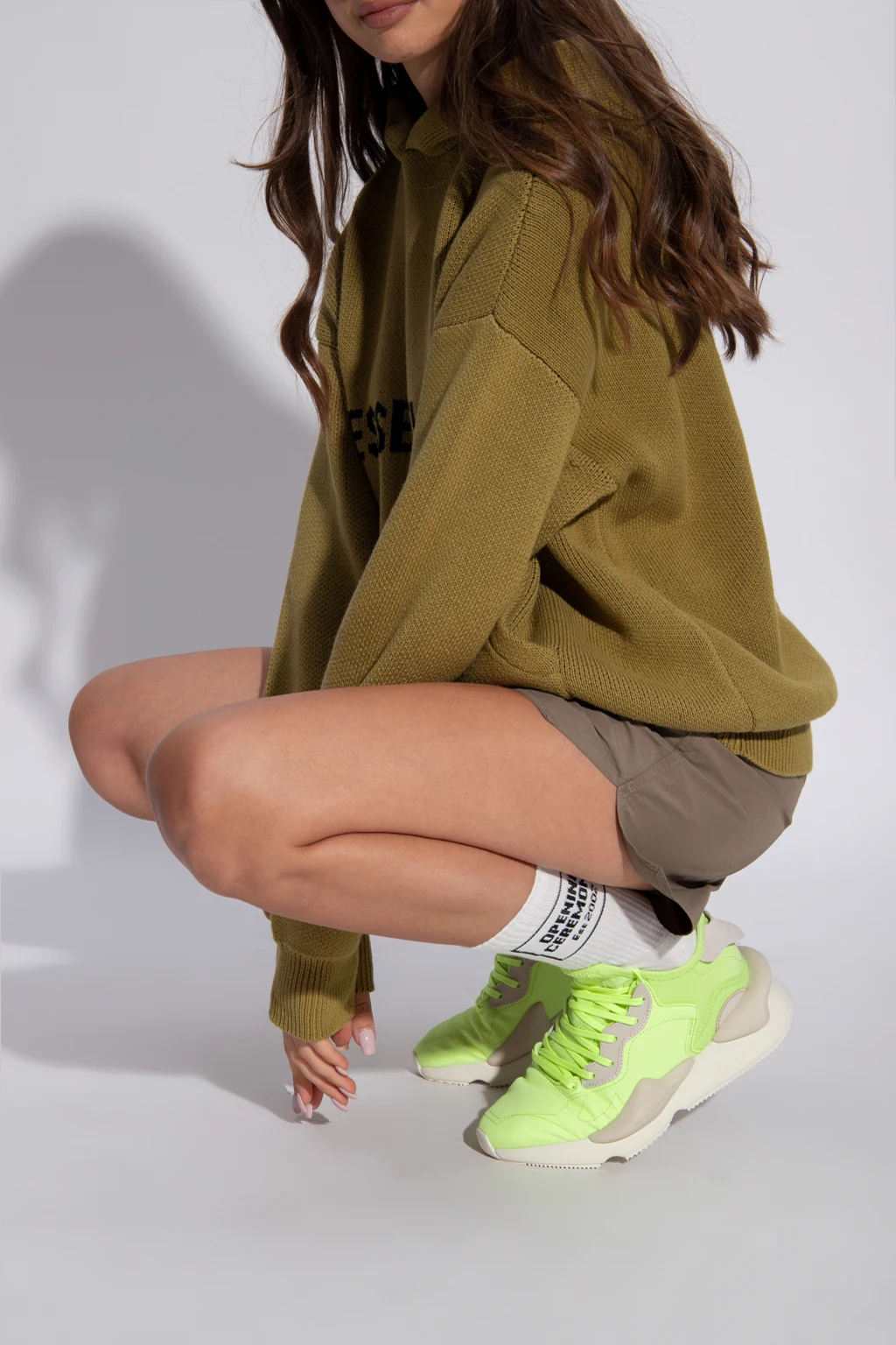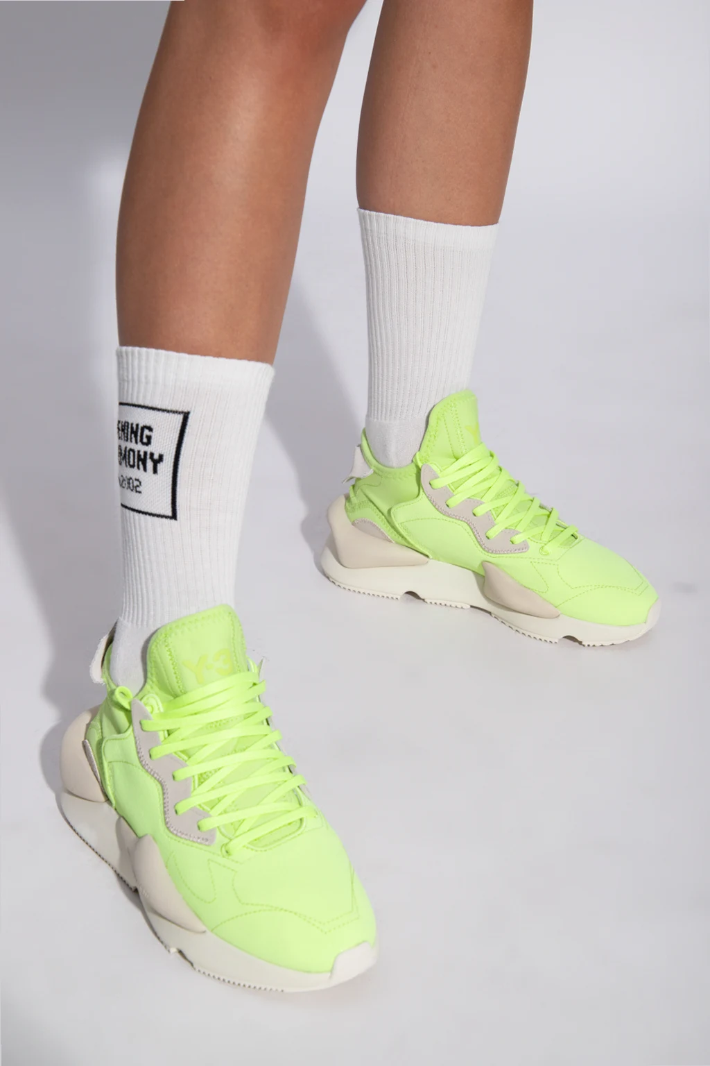 Jasnozielone, sznurowane buty sportowe ze skarpetą, model ‘Kaiwa’ Y-3 Yohji Yamamoto. Wykończone skórą. Na języku logo w kolorze jasnozielonym. Kremowo-jasnoszara, gumowa podeszwa.