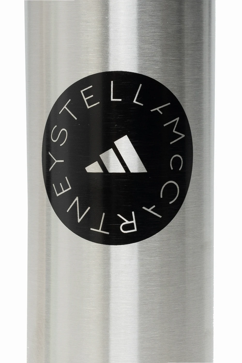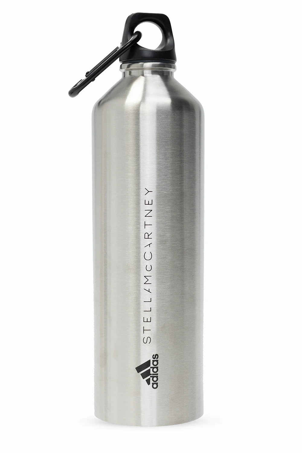 Bidon w kolorze srebrnym ADIDAS by Stella McCartney. Wykonany z formowanego wtryskowo metalu. Zakręcane zamknięcie z półokrągłym uchwytem i karabińczykiem. Nadrukowane logo w kolorze czarnym. Nie zawiera BPA. Możliwość mycia w zmywarce.