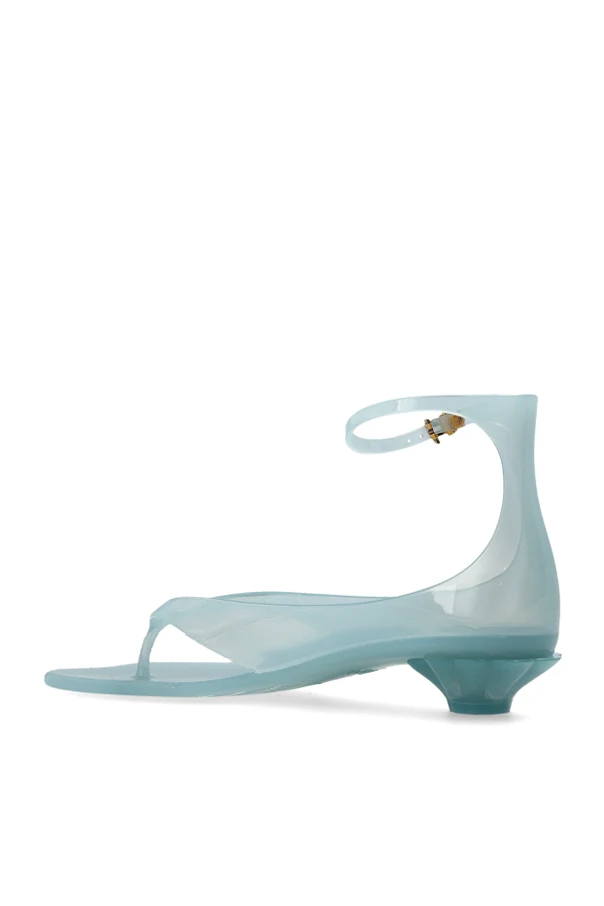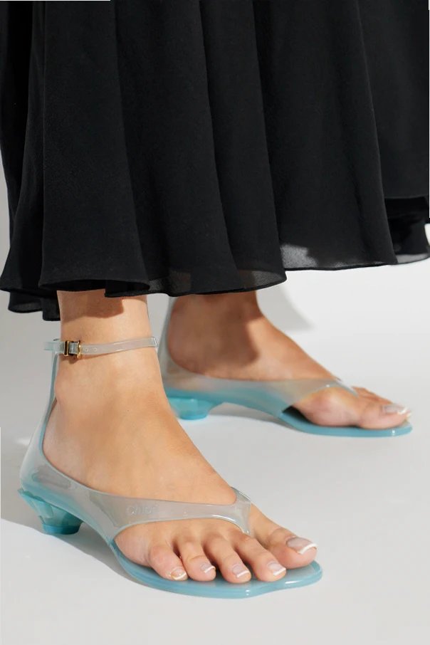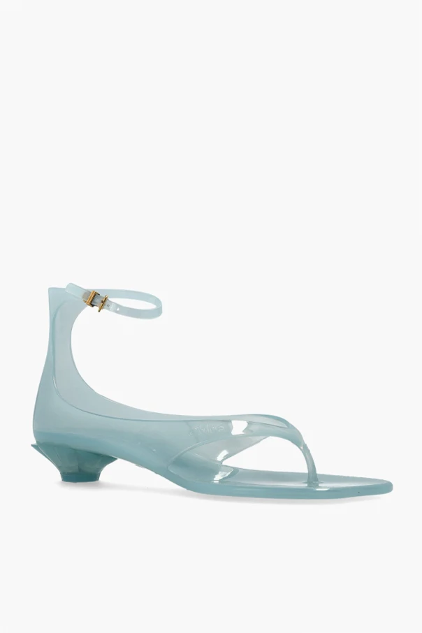 Prezentowane sandały na obcasie ‘Jelly’ od Chloé to wyjątkowa propozycja stworzona z myślą o miłośniczkach wyrafinowanego minimalizmu. Geometryczna forma butów podkreślona została przez cienkie paski oraz niski, stożkowaty obcas, co tworzy niezwykle harmonijną sylwetkę. Całość wykonano z delikatnego, niebieskiego tworzywa o subtelnym połysku, które zapewnia lekkość oraz nowoczesny, transparentny efekt.