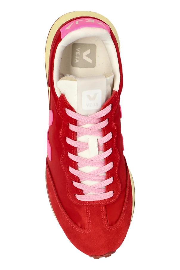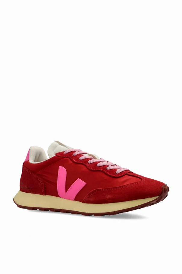 Czerwona cholewka, mistrzowsko skomponowana z matowego nylonu oraz szlachetnych, zamszowych wstawek przy palcach, pięcie i sznurowaniu, urzeka minimalistycznym wzornictwem i ponadczasową formą. Wyraziste, różowe logo w formie litery „V” oraz kontrastujący element na pięcie podkreślają unikatowy charakter obuwia i wyraziste detale sygnowane przez projektanta.
