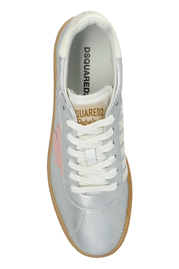 Buty sportowe Rebel marki Dsquared2 to kwintesencja wysmakowanego wzornictwa i nowoczesnej elegancji. Subtelny, srebrny odcień cholewki przyciąga spojrzenia i wprowadza do stylizacji powiew luksusu, natomiast kontrastujące detale w jasnym różu oraz kremie doskonale podkreślają unikatowy charakter modelu.