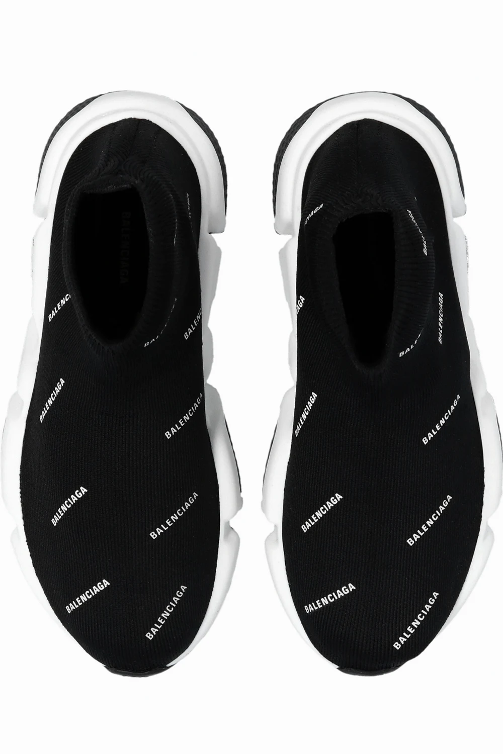 Czarne buty sportowe ze skarpetą Balenciaga Kids. Ozdobione nadrukowanym białym logo. Czarno-biała, gumowa podeszwa.