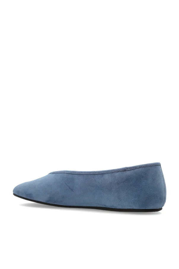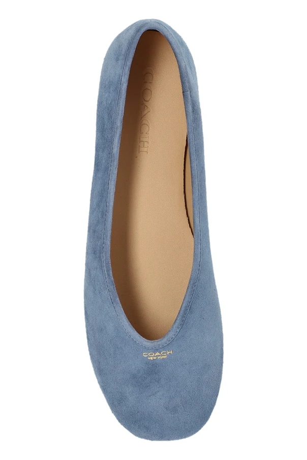 Wyjątkowe zamszowe baleriny Houston marki Coach emanują ponadczasową elegancją, zachwycając głębokim, niebieskim kolorem. Klasyczna, zaokrąglona sylwetka z subtelnie wydłużonym noskiem oraz zabudowaną piętą, została zamknięta w minimalistycznej formie, pozbawionej zbędnych detali.