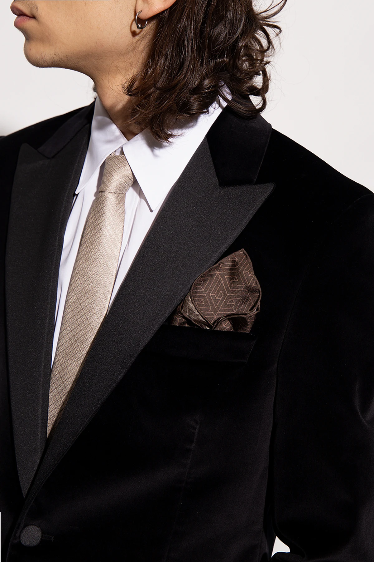 Brązowo-beżowa poszetka Givenchy. Wykonana z jedwabiu. Ozdobiona geometrycznym wzorem z logo.