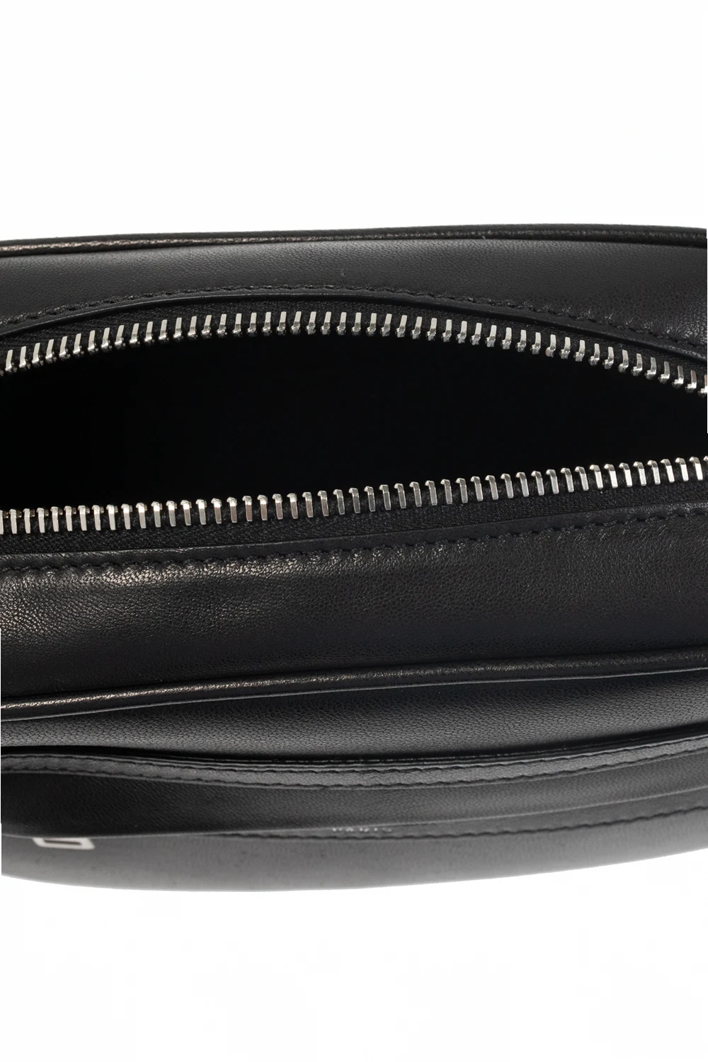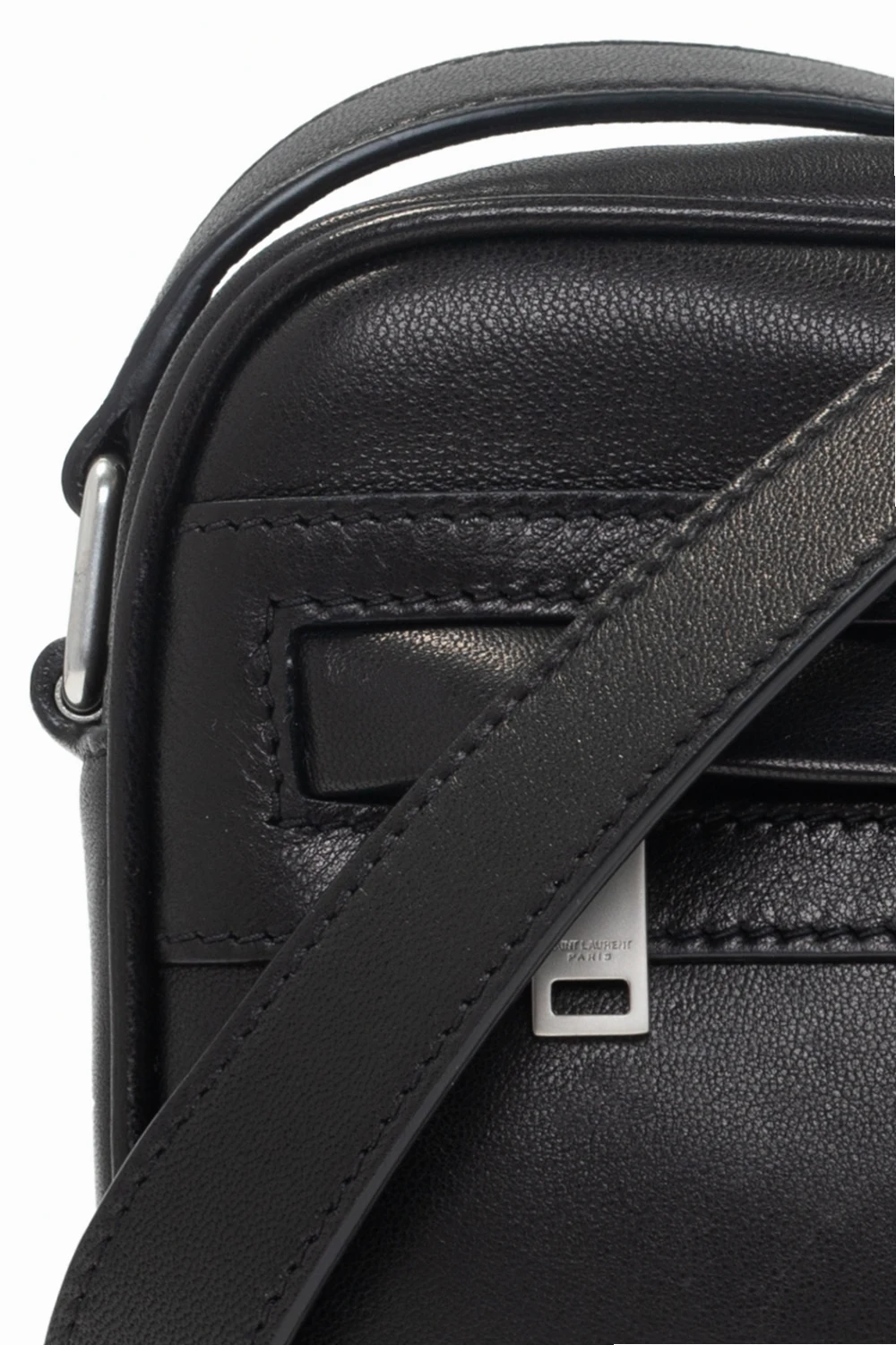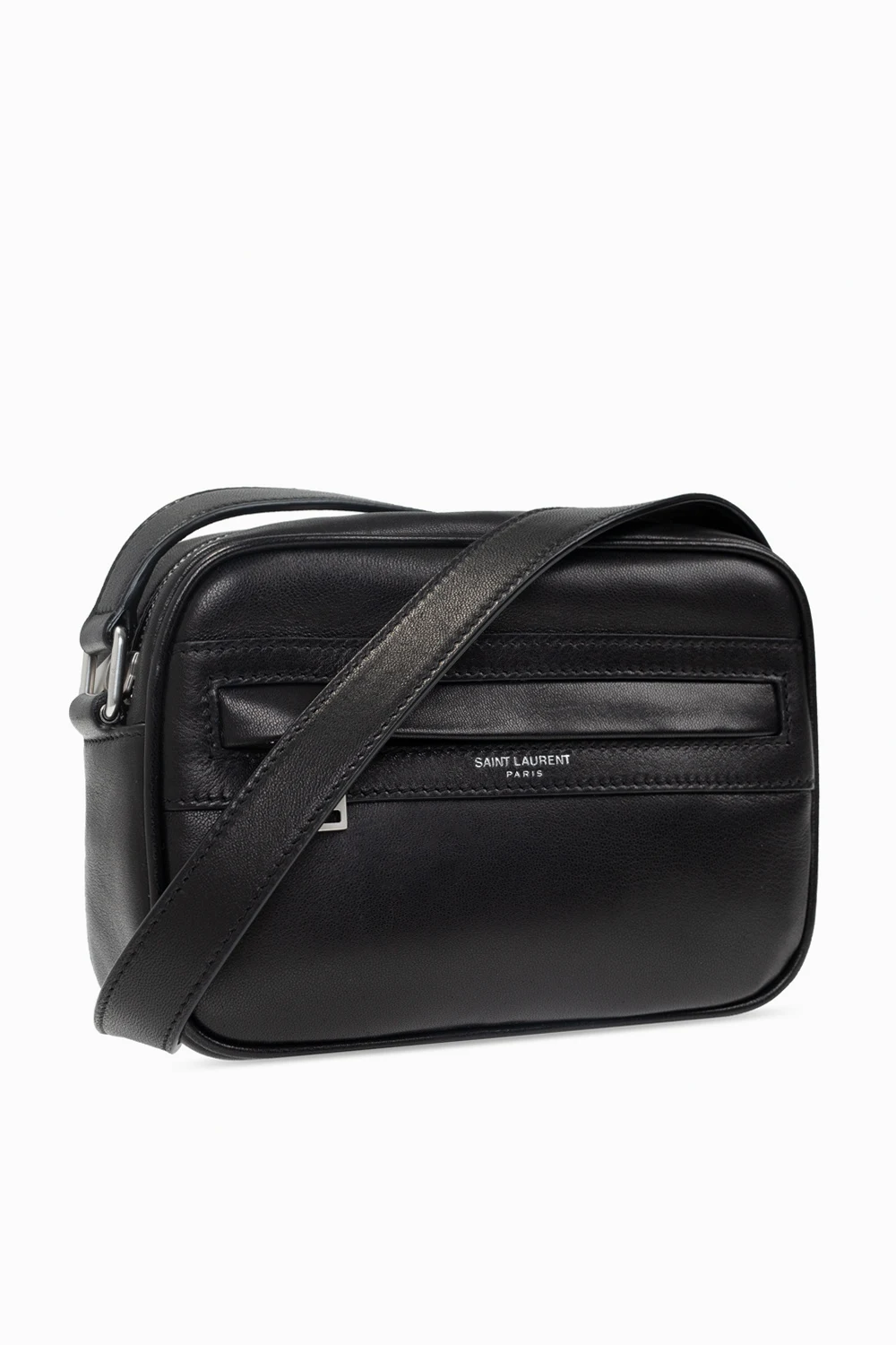 Czarna torba na ramię, model 'Camp Small' Saint Laurent. Wykonana ze skóry. Zamykana na zamek. Z przodu kieszeń zamykana na zamek oraz nadrukowane logo w kolorze srebrnym. Pasek z możliwością regulacji długości. Wewnątrz komora oraz pięć miejsc na kartę. Metalowe wykończenia w kolorze srebrnym.