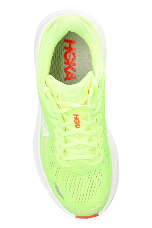 Przemyślana cholewka z przewiewnej tkaniny technicznej w kolorze zielonym wyróżnia się subtelną fakturą, podnosząc komfort i estetykę użytkowania. Projekt uzupełniają wyraziste, białe logo HOKA, pomarańczowy znak graficzny i odblaskowy element na nosku. Szlachetność dopełniają precyzyjnie dobrane detale, podkreślające indywidualny charakter obuwia.
