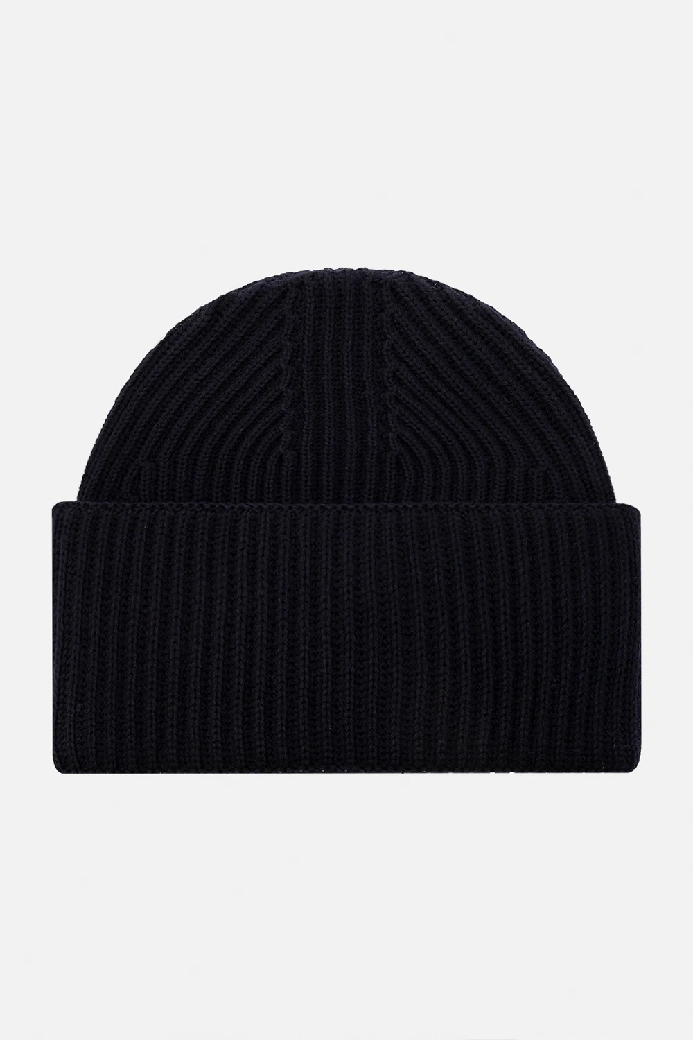 – Mała prążkowana czapka beanie z dzianiny o splocie angielskim w granatowym kolorze