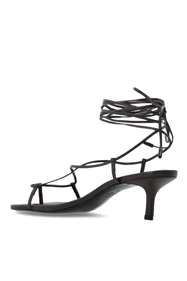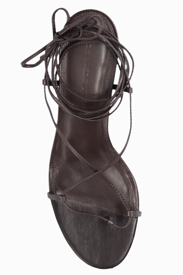 Skórzane sandały na obcasie Alix marki BLACK SUEDE STUDIO to kwintesencja luksusu i wyrafinowanego minimalizmu. Model urzeka smukłym obcasem typu kitten heel o wysokości ok. 4–5 cm oraz geometrycznym układem delikatnych, skórzanych pasków. Brązowy odcień wysokogatunkowej skóry w połączeniu z wyraźną, naturalną fakturą nadaje całości niepowtarzalnej głębi i elegancji.