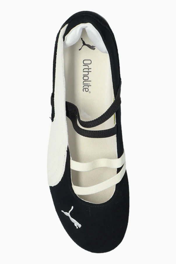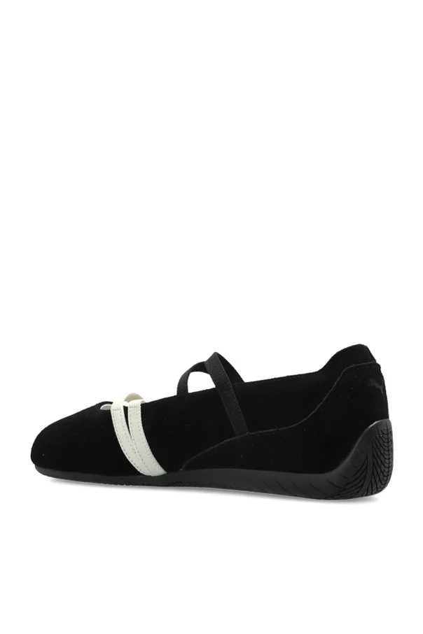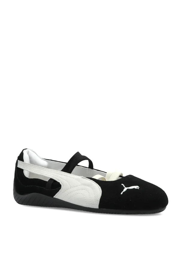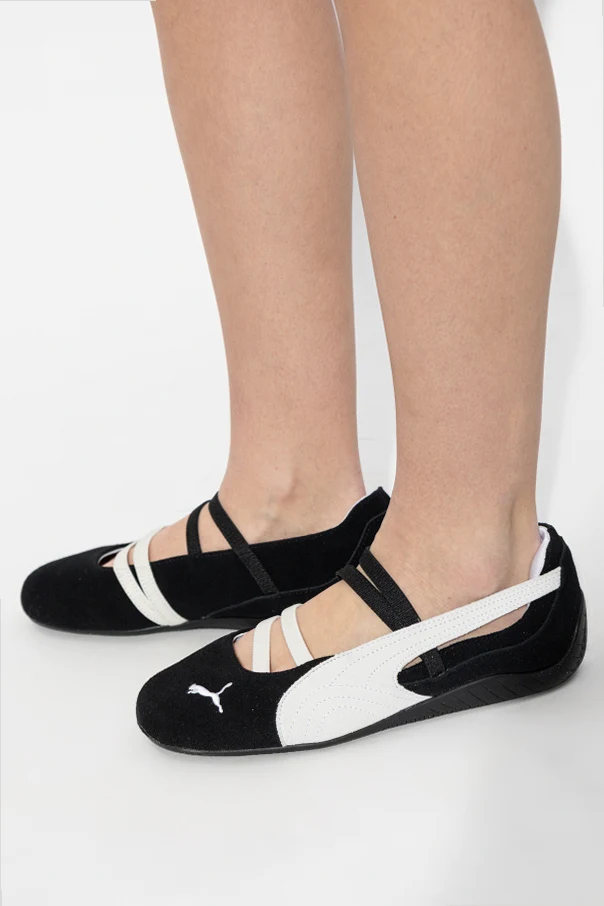 Buty „Speedcat Ballet SD Wns” marki Puma wyznaczają kanon współczesnej elegancji w codziennej odsłonie obuwia sportowego. Balerinowy profil o niskiej wysokości i opływowej sylwetce łączy wyrafinowaną lekkość z funkcjonalnością, nadając stylizacji subtelny, dziewczęcy charakter. Zewnętrzna warstwa z wysokogatunkowego zamszu podkreślona została wyrazistym, białym paskiem i starannymi przeszyciami, a subtelne logo w kształcie pumy zdobiące przód stanowi intrygujący detal. Elastyczne, kontrastujące paski harmonijnie dopełniają czarną cholewkę, nadając całości baletowy sznyt. Podeszwa wykonana z trwałej gumy zapewnia znakomitą przyczepność, gwarantując komfort zarówno podczas treningu, jak i codziennego użytkowania.