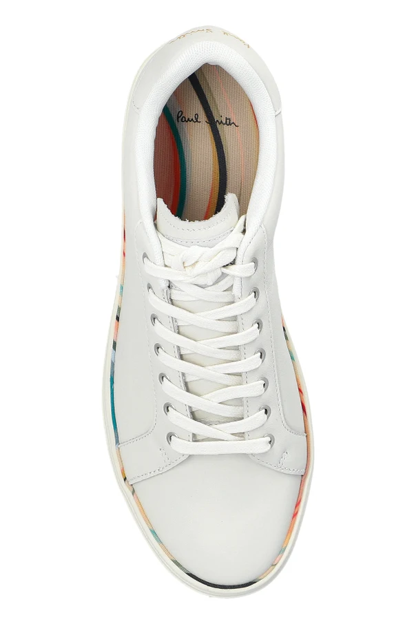 Buty sportowe Lapin autorstwa Paul Smith to kwintesencja ponadczasowej elegancji w minimalistycznej odsłonie. Klasyczny, nisko wycięty fason typu sneakers typu low top zachwyca subtelną linią oraz wszechobecną bielą , która została finezyjnie przełamana wielobarwnym, designerskim detalem tuż nad podeszwą.