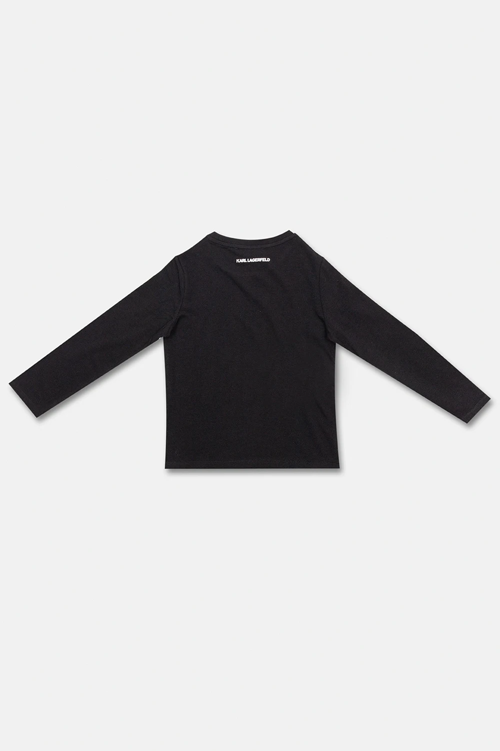Czarny top z długim rękawem Karl Lagerfeld Kids. Wykonany z bawełny. Ozdobiony kolorowym wzorem z motywem zwierzęcym oraz logo. Okrągły dekolt wykończony ściągaczem.