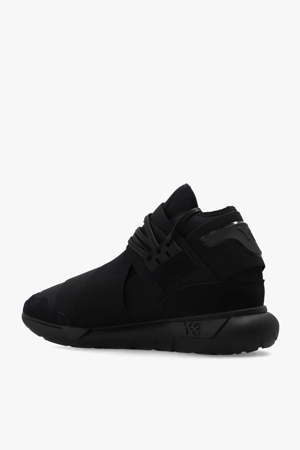 Czarne, sznurowane buty sportowe, model ‘Qasa’ Y-3 Yohji Yamamoto. Wykonane z materiału i wykończone skórzanymi i zamszowymi elementami. Cholewka ozdobiona elastycznymi gumami zapewniającymi lepsze dopasowanie. Profil ozdobiony wytłoczonym logo. Motyw powtórzony w formie gumowej aplikacji zdobiącej tył buta. Amortyzująca, wydajna wkładka PORON®. Czarna podeszwa Tubular wykonana z lekkiej pianki EVA. Dołączone dodatkowe sznurowadła.