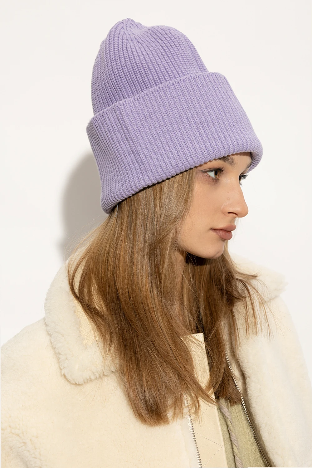 – Mała prążkowana czapka beanie z dzianiny o splocie angielskim w granatowym kolorze