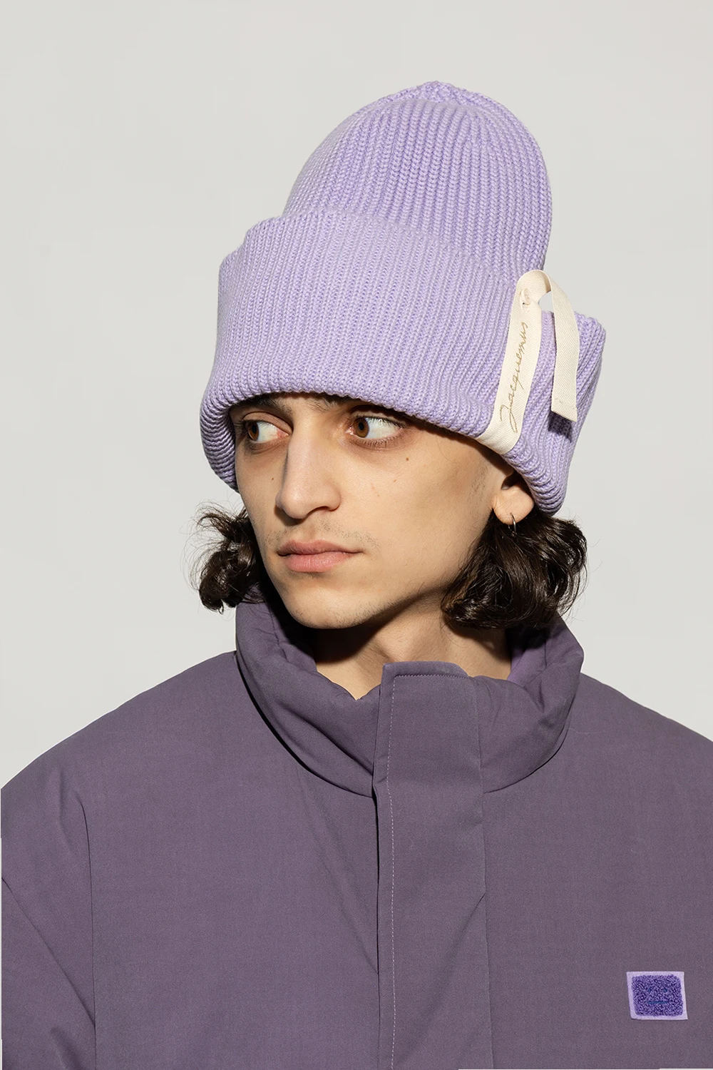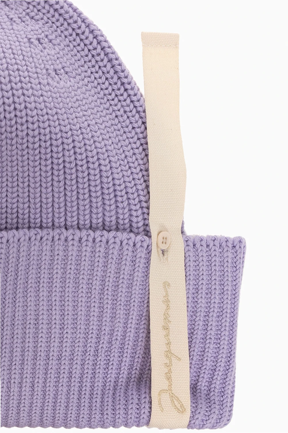 Jasnofioletowa czapka, model ‘Pipa’ Jacquemus. Wykonana z bawełny. Ozdobiona kremowym paskiem z zapięciem na guzik i wyszytym logo.