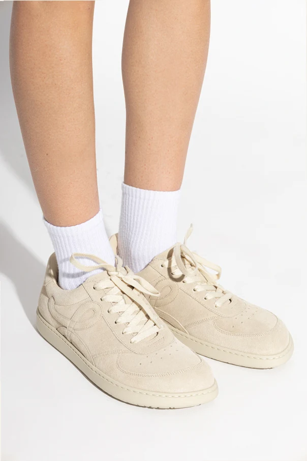 Buty sportowe ‘Jambo’ to kwintesencja ponadczasowej elegancji w sportowym wydaniu. Wyjątkowy model, utrzymany w odcieniu kremowym, zachwyca harmonijną sylwetką typu low top z zaokrąglonym czubkiem oraz klasycznym sznurowaniem. Ekskluzywny zamsz, z którego wykonano cholewkę, nadaje butom niepowtarzalną miękkość i szlachetną fakturę, a subtelne przeszycia oraz dekoracyjna aplikacja projektanta podkreślają wyrafinowany charakter obuwia.