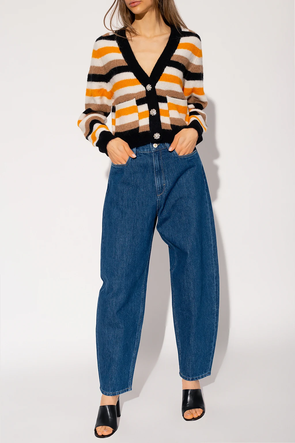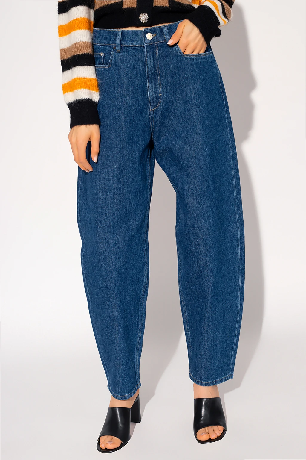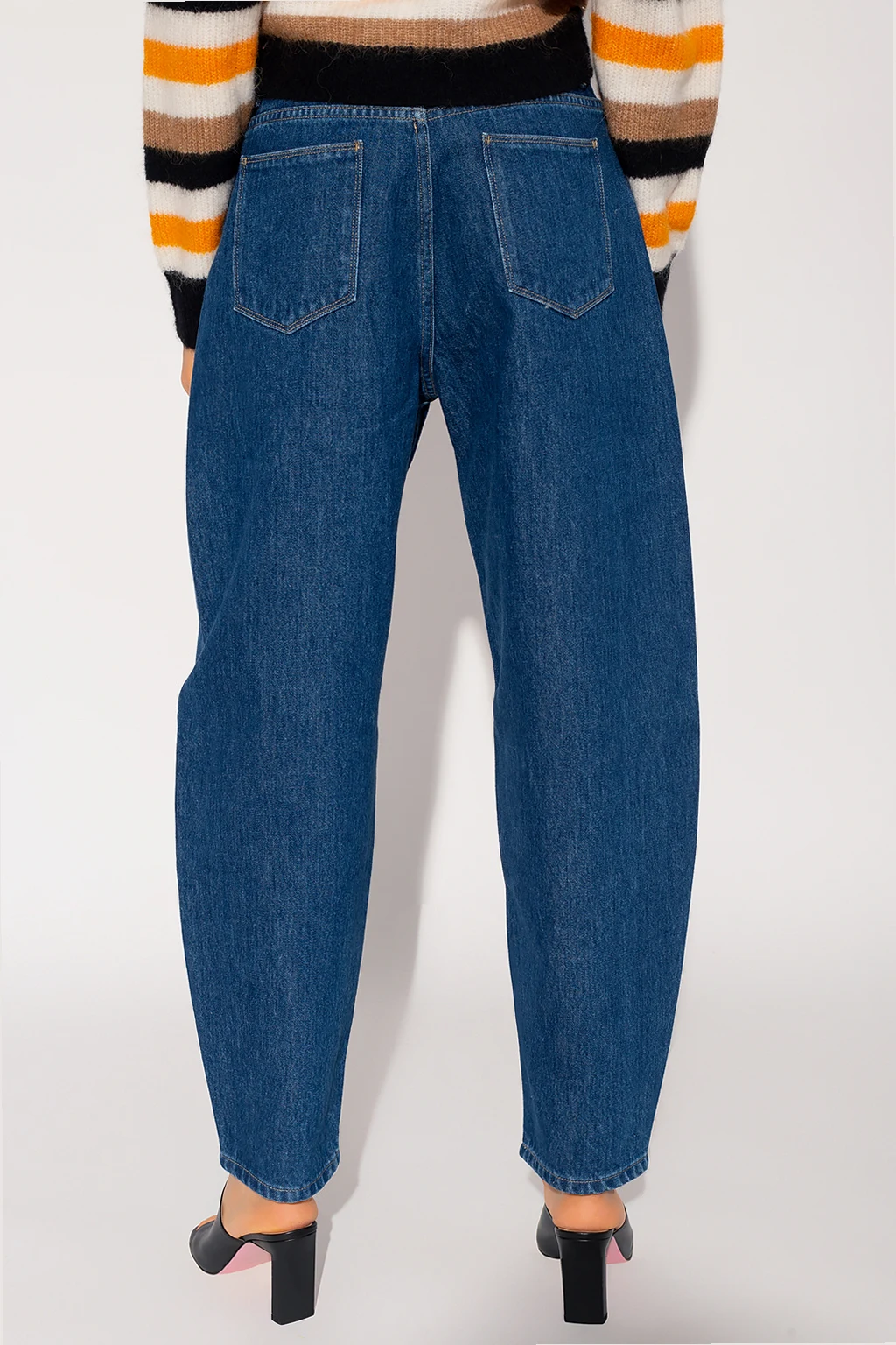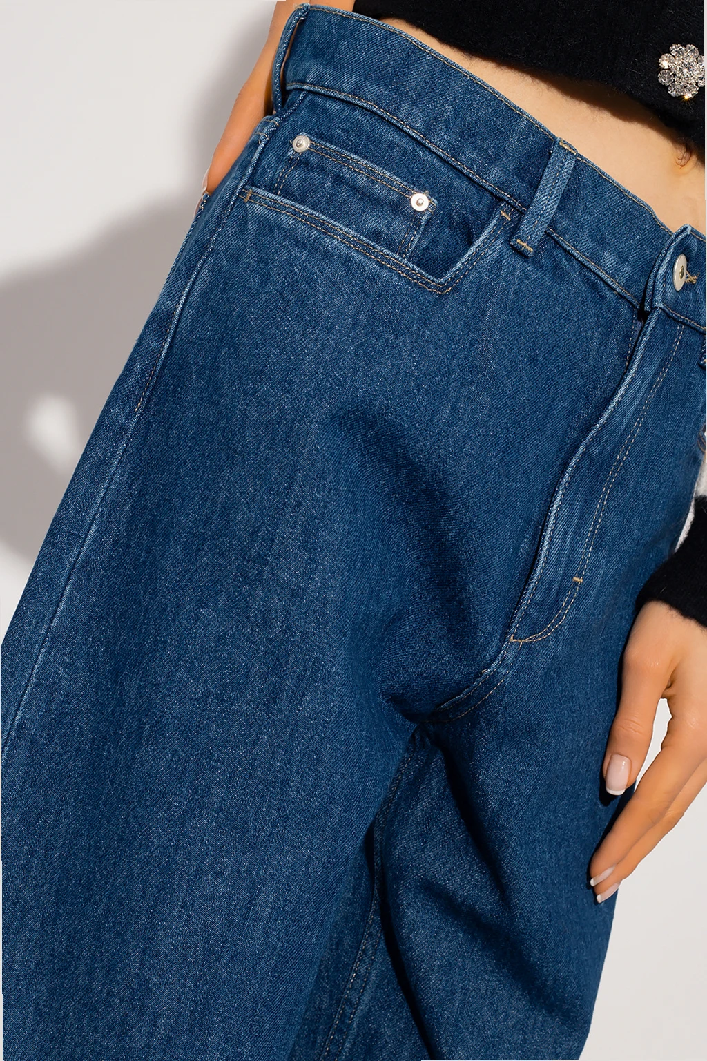 Ciemnoniebieskie jeansy, model ‘Chamomile’ Wandler. Wykonane z organicznej bawełny. Zapinane na guzik oraz zamek. Pięć wsuwanych kieszeni: trzy z przodu oraz dwie z tyłu. Wysoki stan. Długie, zwężane nogawki.