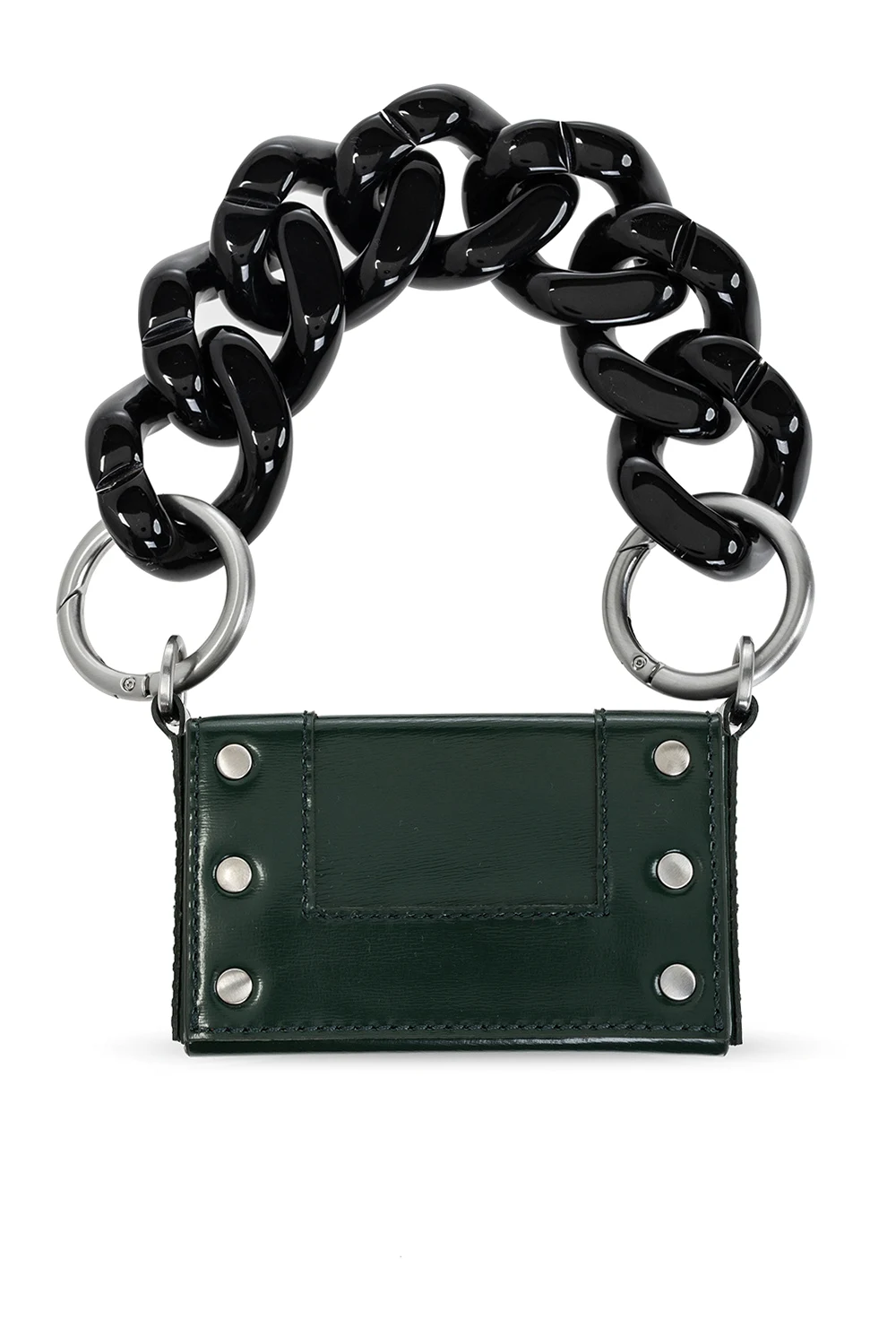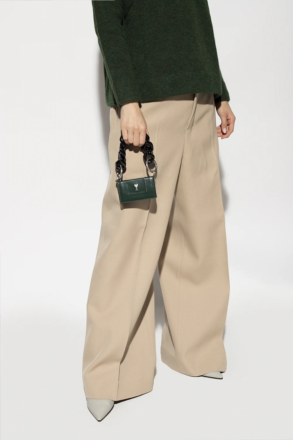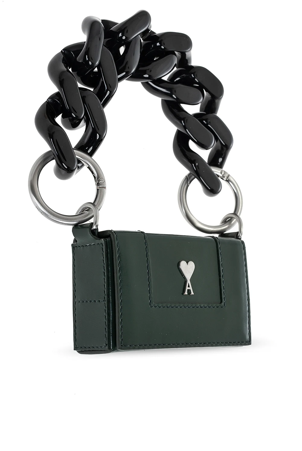 Ciemnozielona torba do ręki, model 'De Coeur Mini' Ami Alexandre Mattiussi. Zamykana na magnetyczny zatrzask. Wykonana ze skóry bydlęcej oraz owczej. Z przodu metalowe logo w kolorze srebrny. Odpinana półokrągła rączka w formie łańcucha. Wewnątrz komora. Metalowe elementy w kolorze srebrnym.