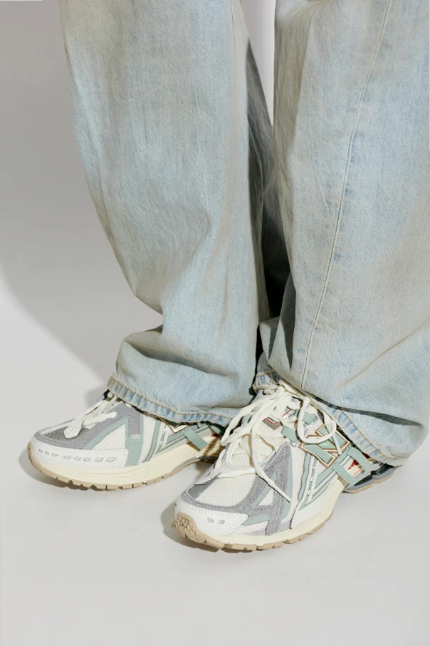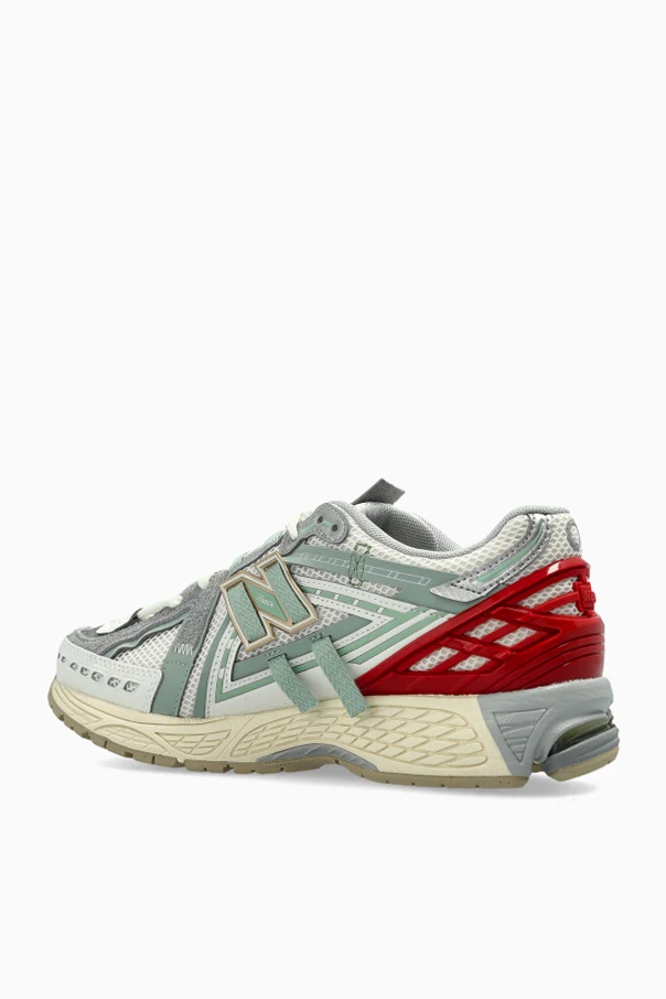 Dominujący szary kolor harmonijnie łączy się z wielowarstwową kompozycją: subtelne nakładki z miękkiej skóry oraz wzmocnienia z materiału okalają przewiewne panele siateczkowe, zaś gładkie, eleganckie elementy z tworzywa sztucznego dbają o trwałość. Zwieńczenie całości stanowi połyskliwa, czerwona sekcja na pięcie oraz duże, rozpoznawalne logo „N” po obu bokach.