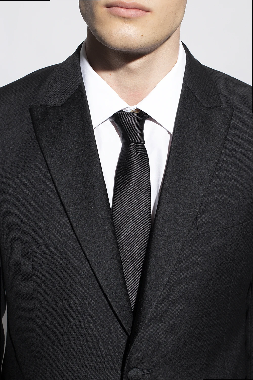 Czarny, jedwabny, prążkowany krawat Lanvin.
