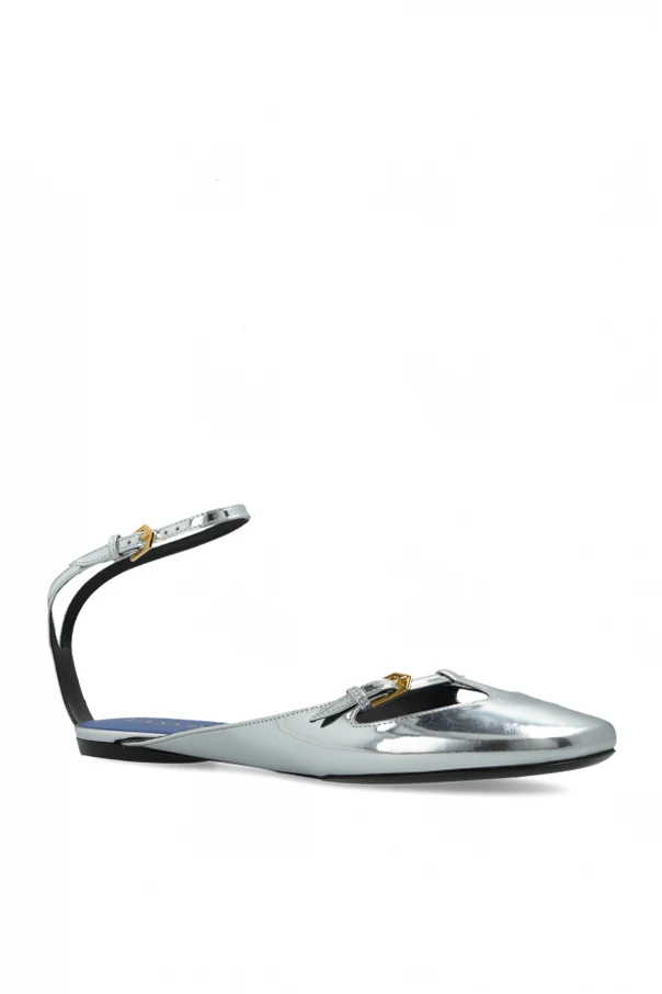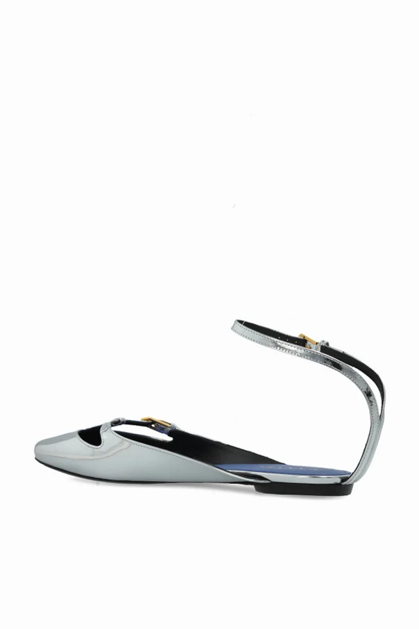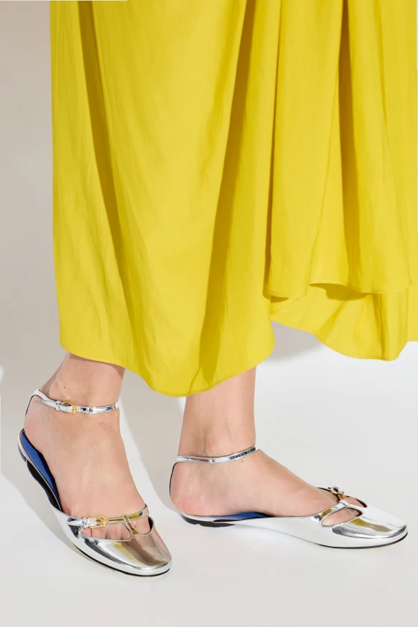 Baleriny Mary-Jane marki Lanvin to kwintesencja wyrafinowanej klasyki w nowoczesnej interpretacji. Subtelna linia z migdałowym noskiem oraz odsłonięta pięta tworzą kompozycję godną eleganckich okazji, zaś cienki pasek wokół kostki, zapinany na sprzączkę typu slingback, zapewnia wyjątkową lekkość i zwiewność sylwetce.