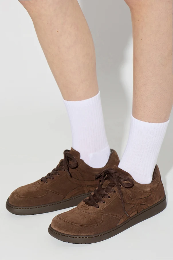 Wierzch buta wykonano z doskonałego, gładkiego zamszu w głębokim brązowym kolorze, nadając całości wyrazu autentycznej elegancji. Boczną część cholewki zdobi dekoracyjne szycie, tworzące okazały motyw – cechę rozpoznawalną marki Loewe. Podeszwa z wysokogatunkowej gumy zapewnia przyczepność oraz wytrzymałość, a minimalistyczne wzornictwo podkreśla luksus i ponadczasowość modelu.